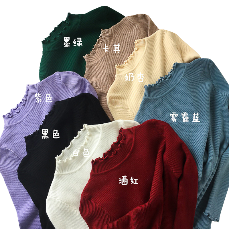 / 秋冬女裝韓版木耳邊半高領純色修身顯瘦毛衣打底衫長袖針織衫上衣