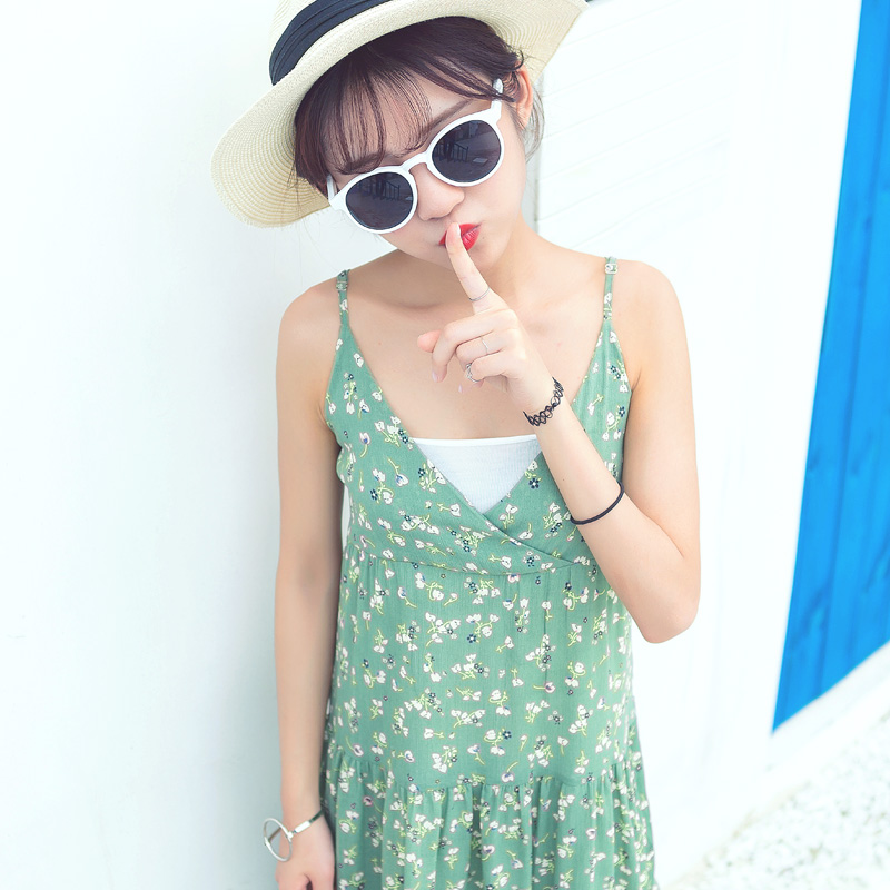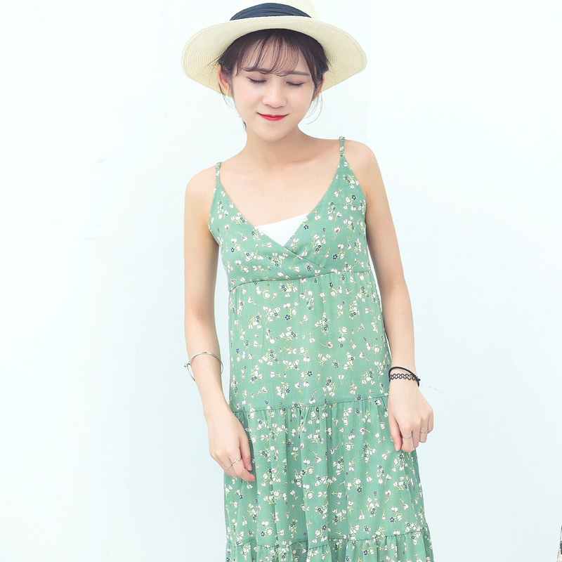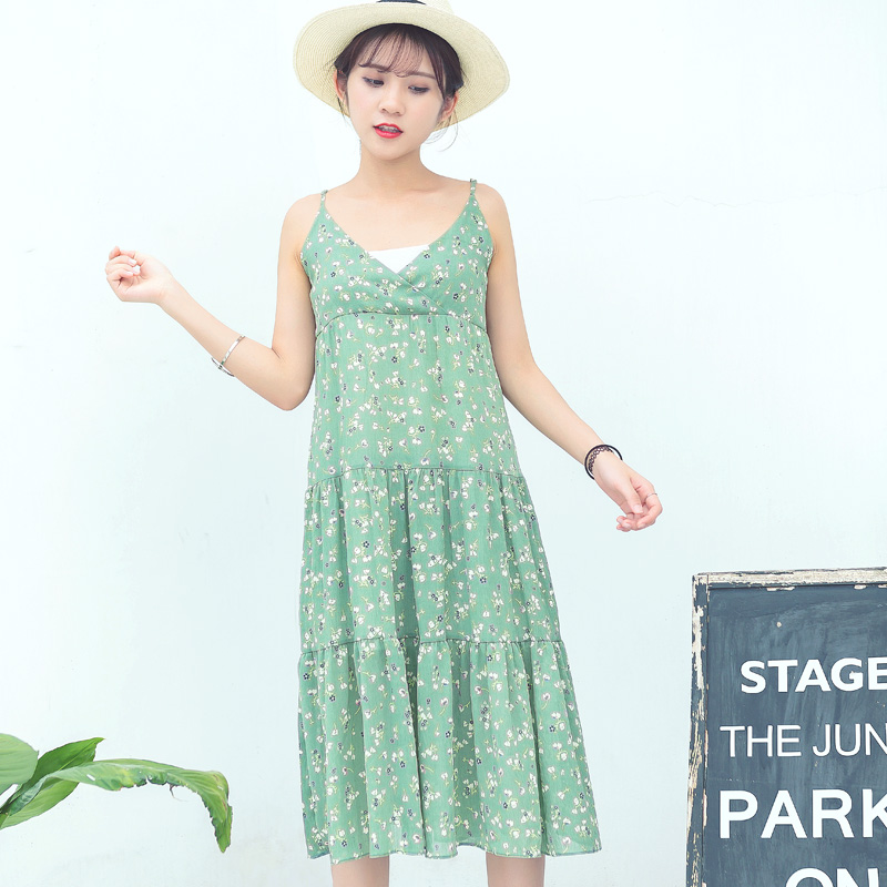 / 夏季新款女裝小清新甜美碎花連衣裙韓版中長款吊帶雪紡裙子潮