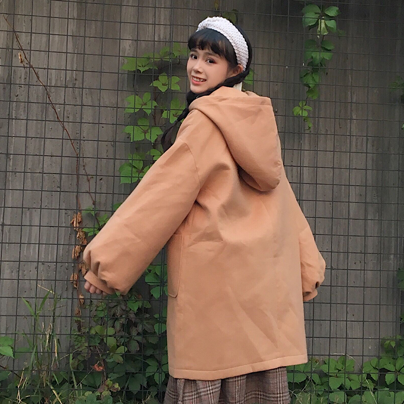 軟妹可愛燈籠長袖毛呢外套上衣秋裝女2018新款學生寬松中長款大衣