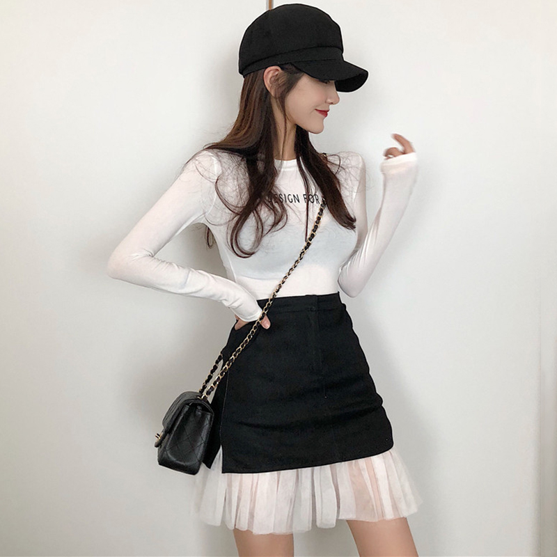 / 秋裝女2018新款修身顯瘦黑色長袖T恤韓版字母印花打底緊身上衣潮