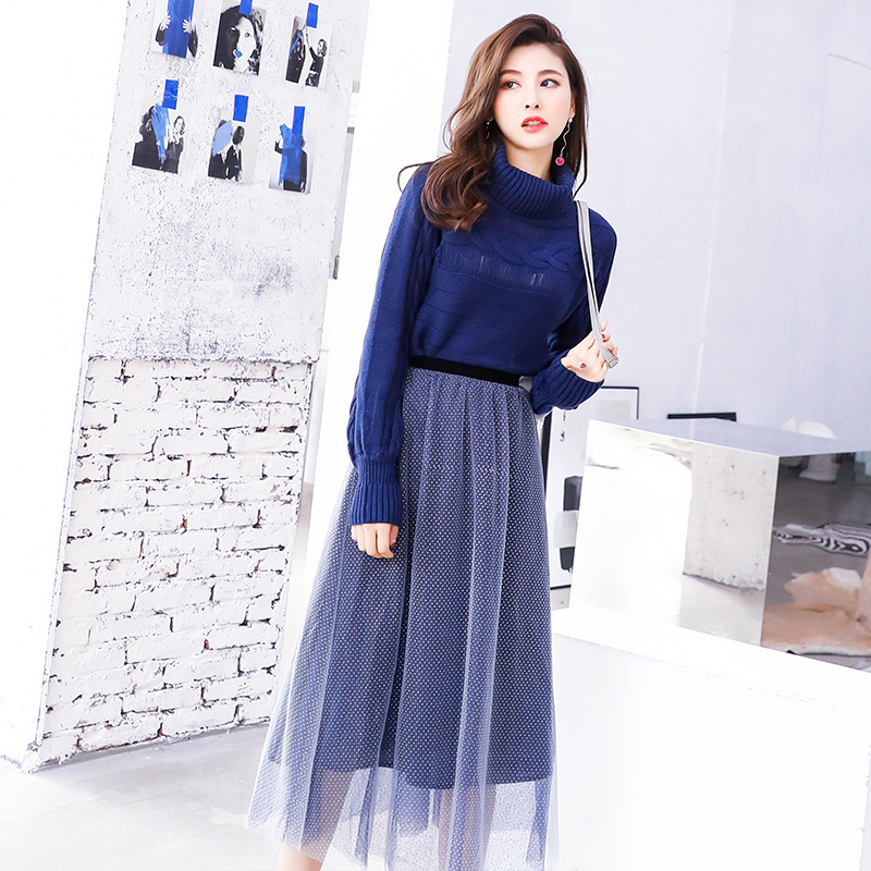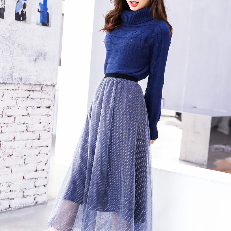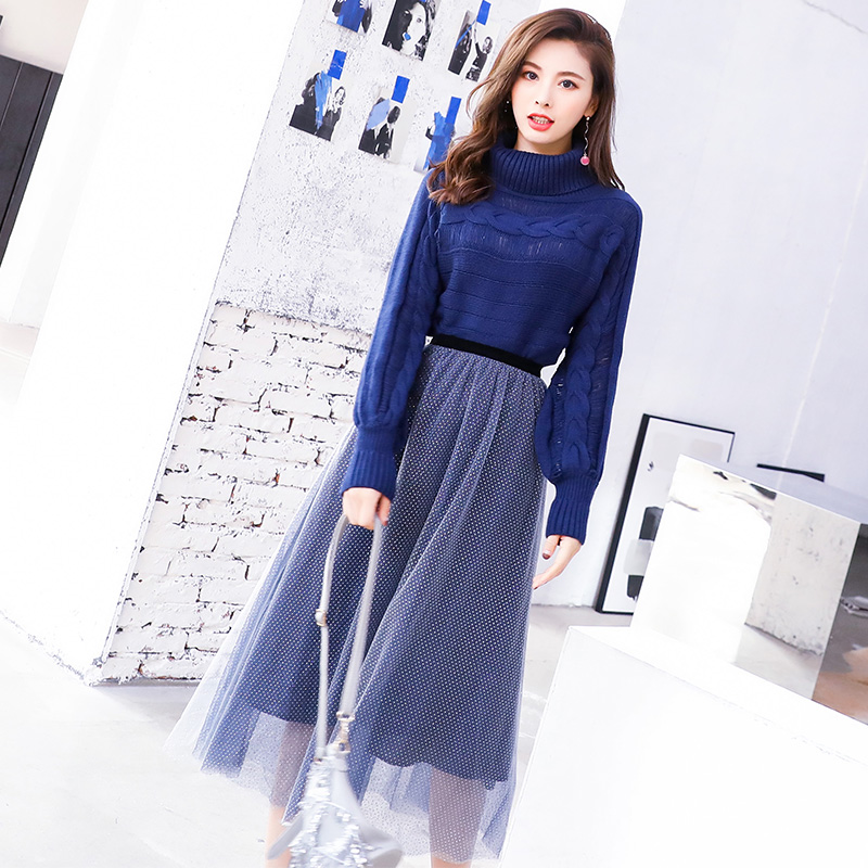 / 2018秋冬裝新款時髦網紅港味風毛衣網紗超仙小個子套裝裙女初秋季