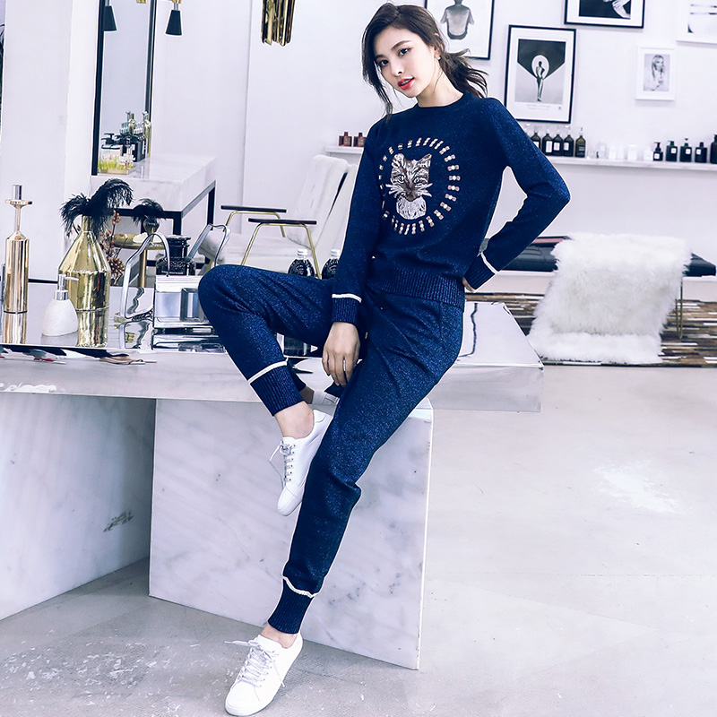 / 名媛氣質休閑時尚套裝女2018秋裝新款長袖毛衣小腳褲長褲針織兩件