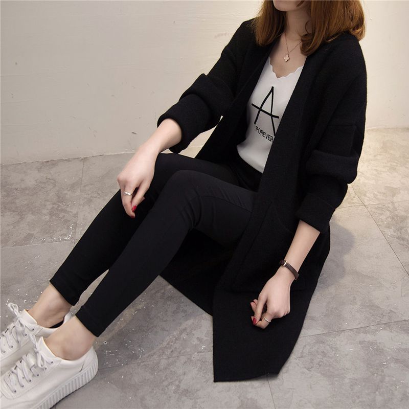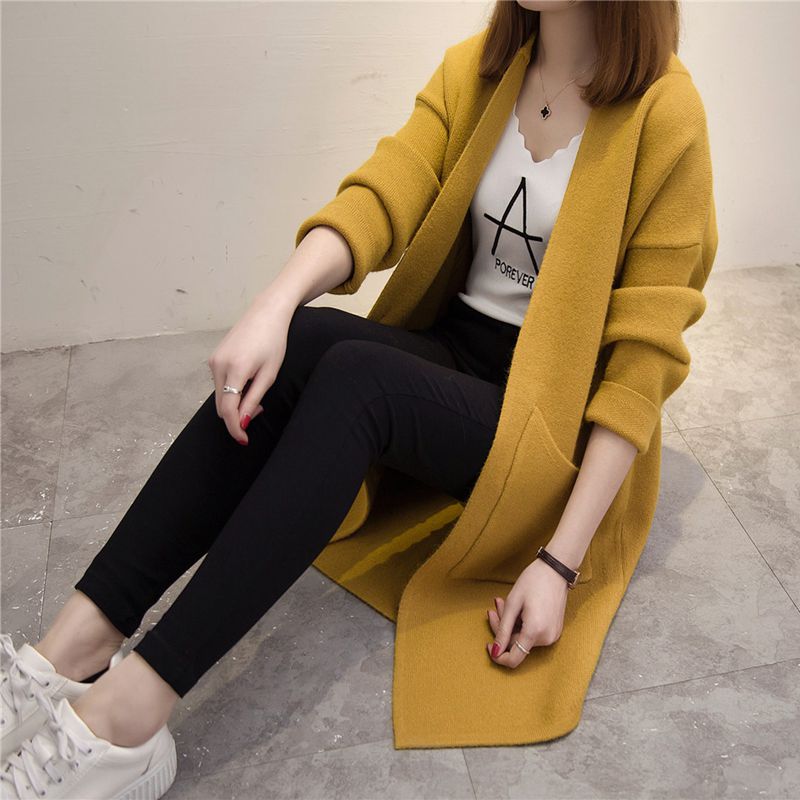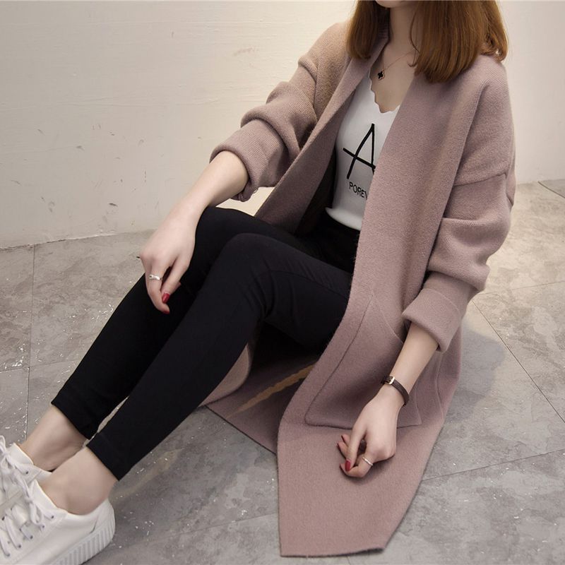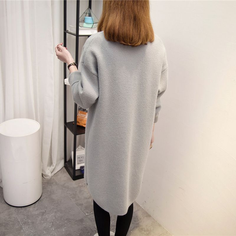 / 韓版大碼百搭中長款長袖女外套秋冬新款毛衣不規則口袋外套潮