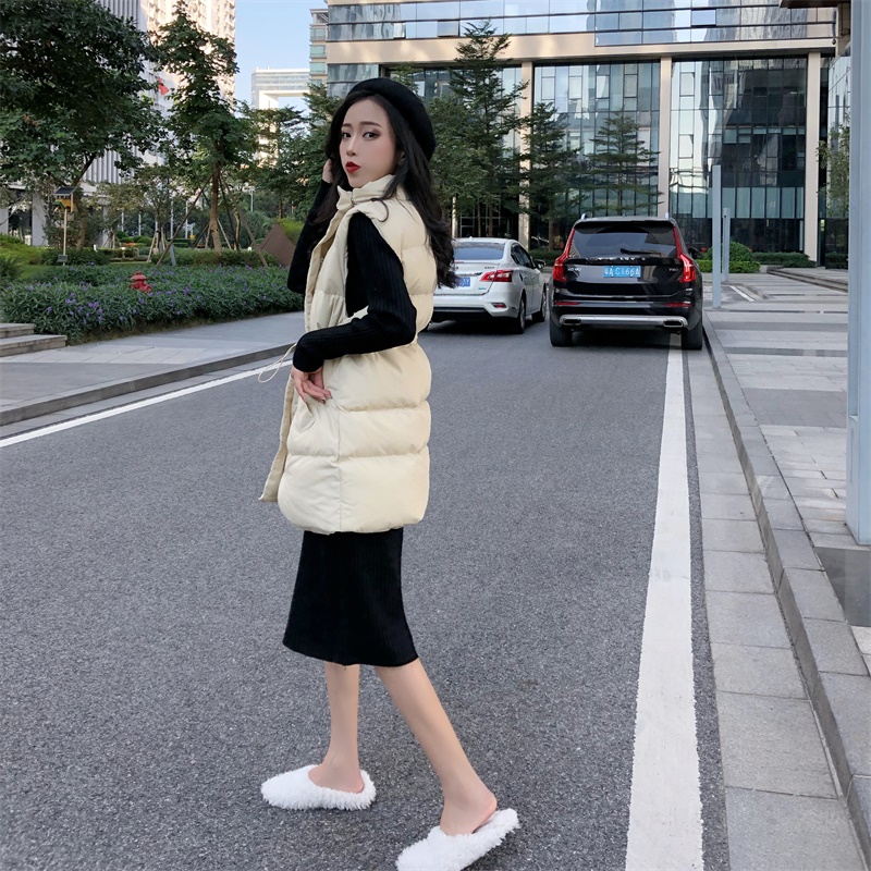 韓系女神套裝秋冬新款面包服馬甲外套+修身打底連衣裙時尚兩件套