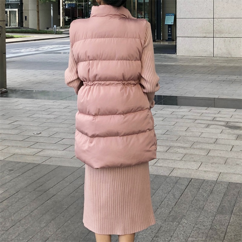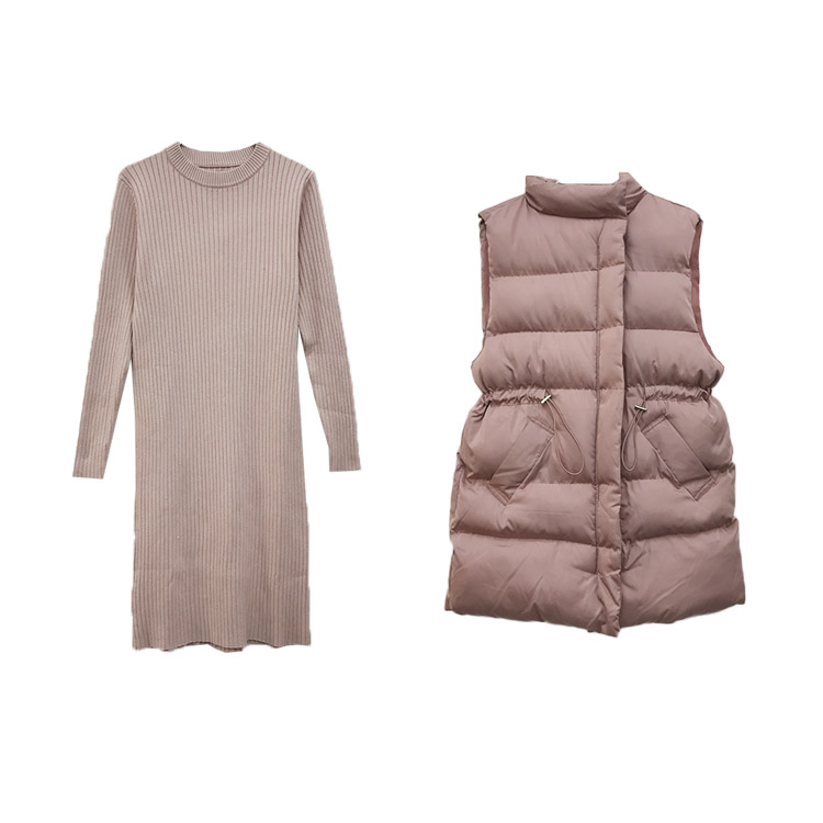 套頭修身坑條長袖針織連衣裙+面包服無袖馬甲外套女時尚兩件套裝