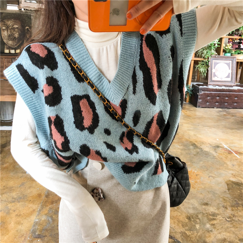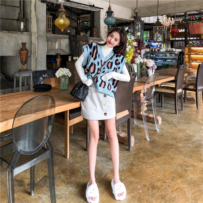 灰色半身裙|粉色半身裙|粉色豹紋馬甲|藍色豹紋馬甲|白色打底衫