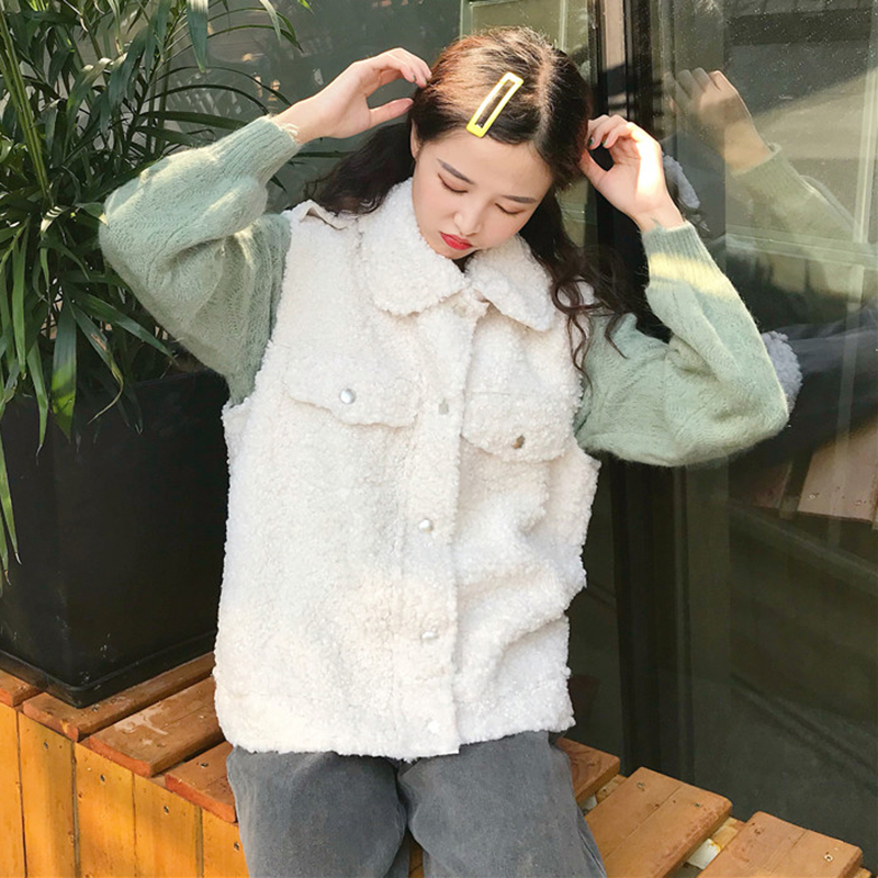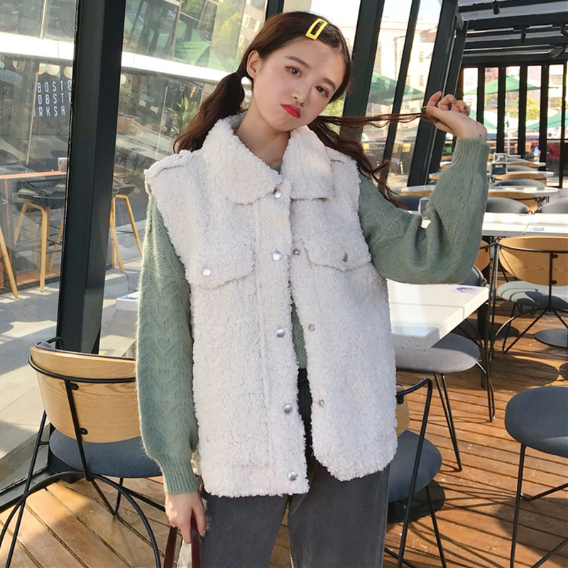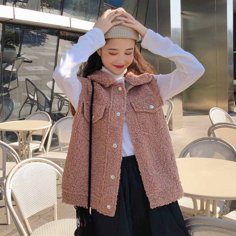 / 秋冬女裝新款韓版時尚翻領羊羔毛馬甲背心女學生無袖毛絨坎肩外套