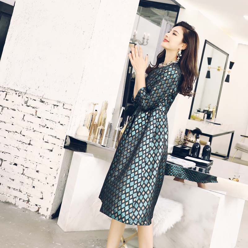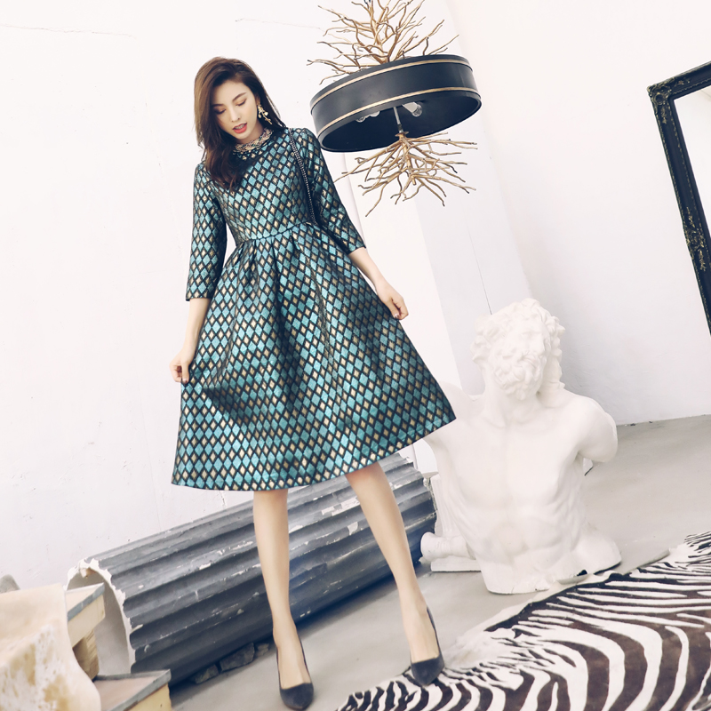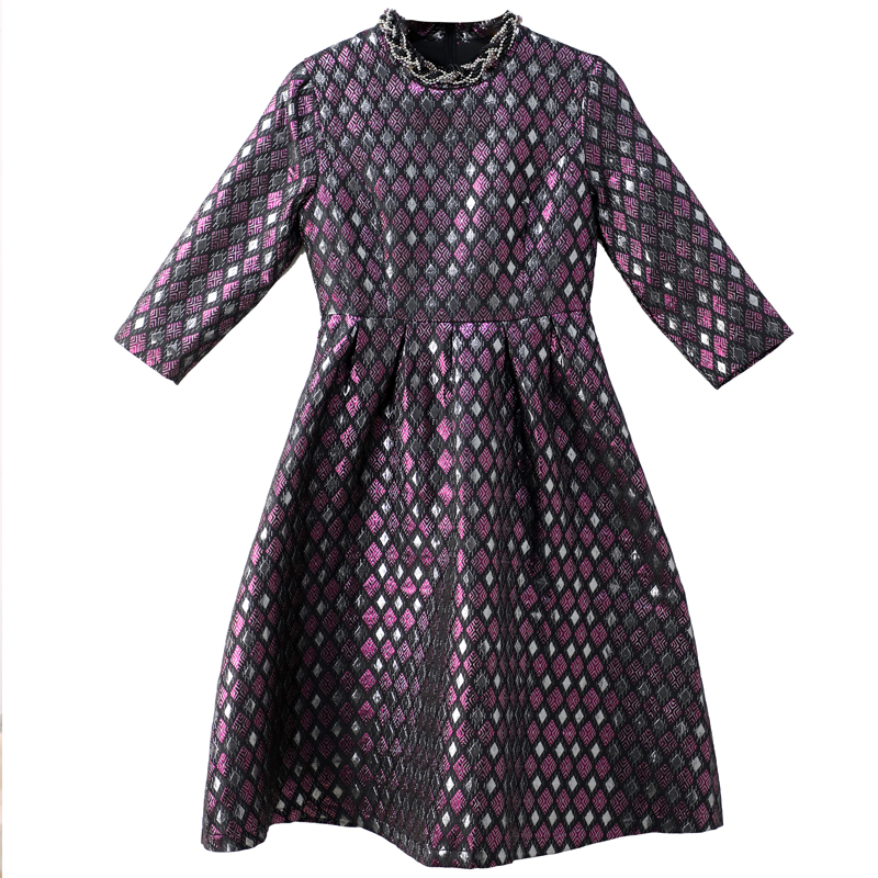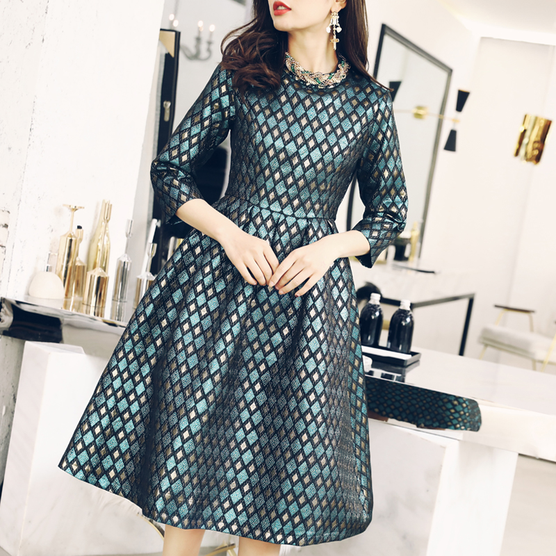 網紅名媛優雅減齡收腰蓬蓬a字連衣裙女秋冬裝2018新款花色公主裙