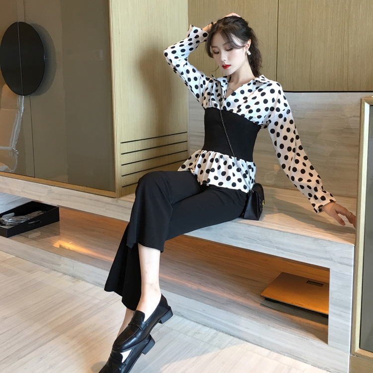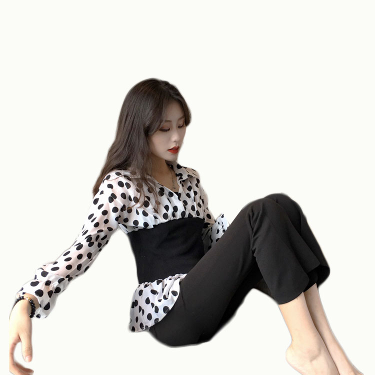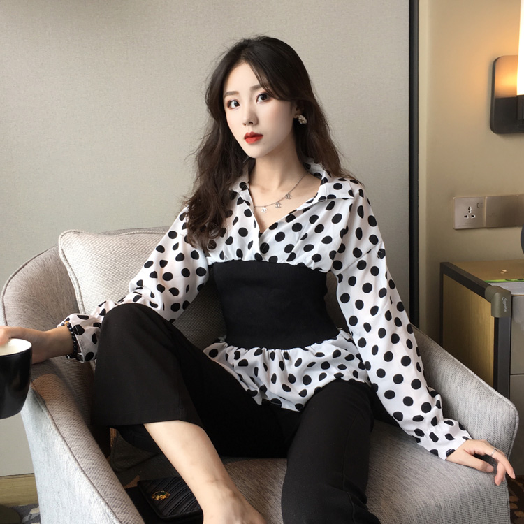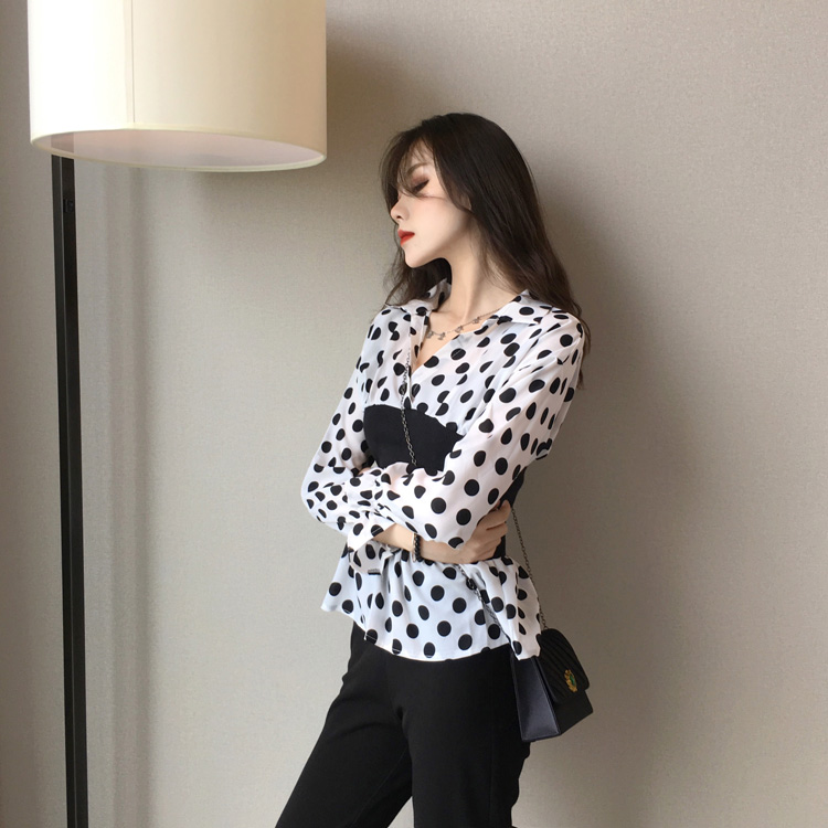 / 網紅chic慵懶風襯衣女2018新款波點襯衫女收腰雪紡顯瘦設計感上衣