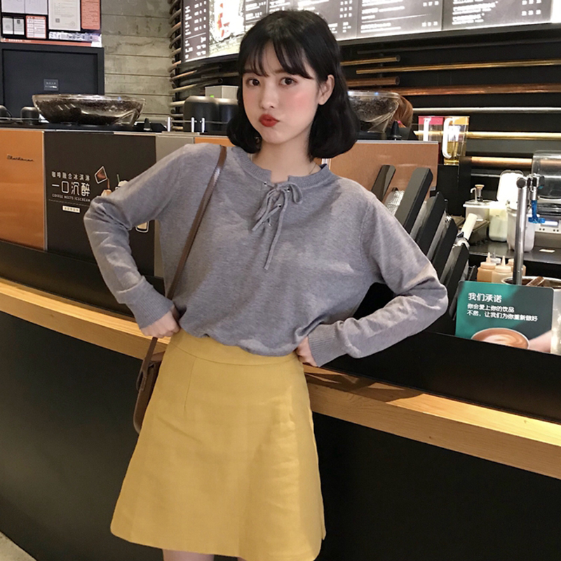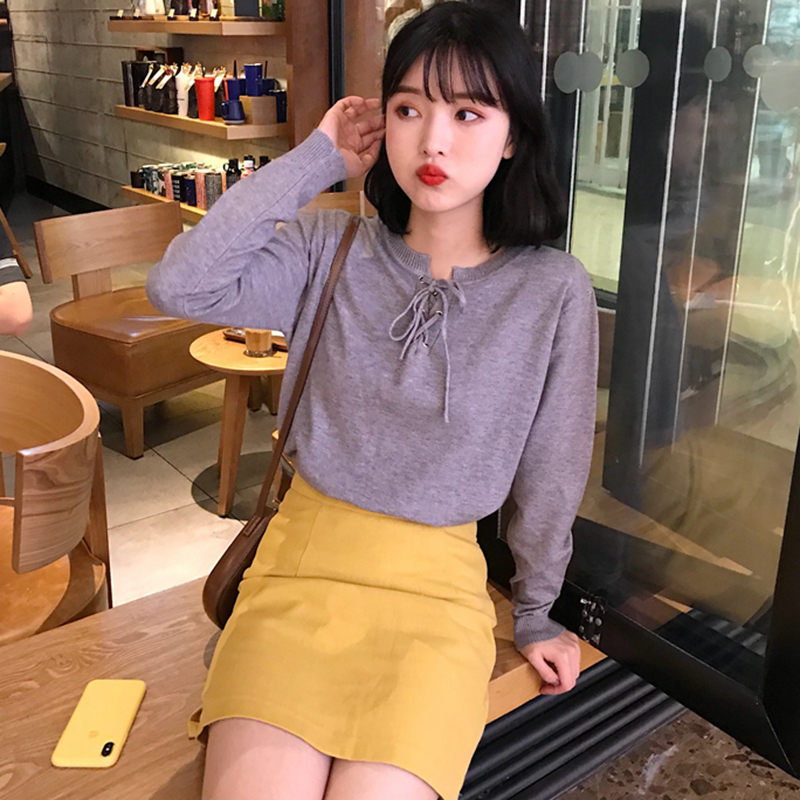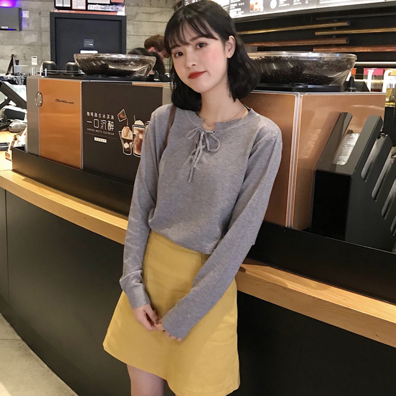 / 修身圓領系帶打底衫秋裝女2018新款學生體恤衣服韓版長袖T恤上衣