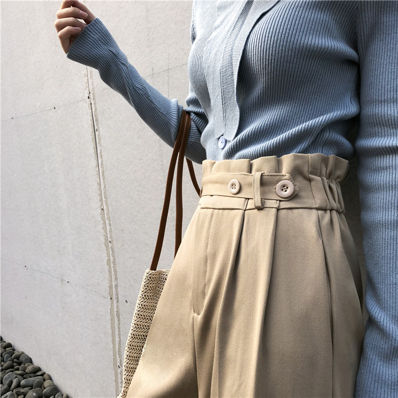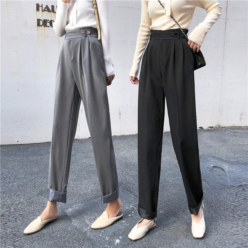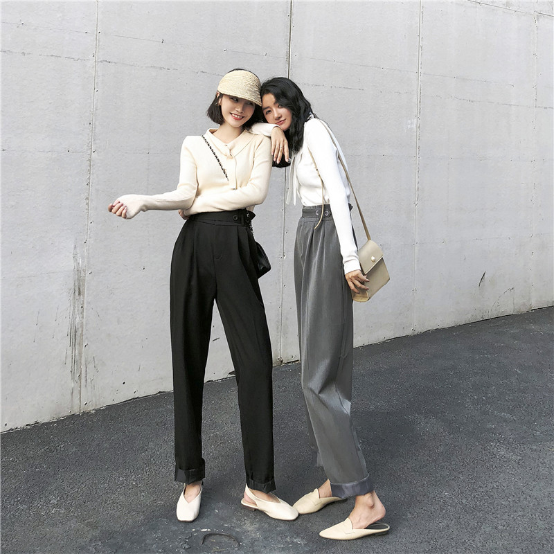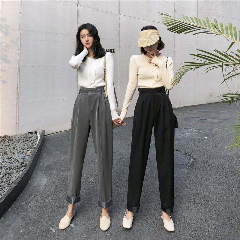 韓國ulzzang褲子女秋2018新款高腰顯瘦花苞休閑長褲女西裝哈倫褲