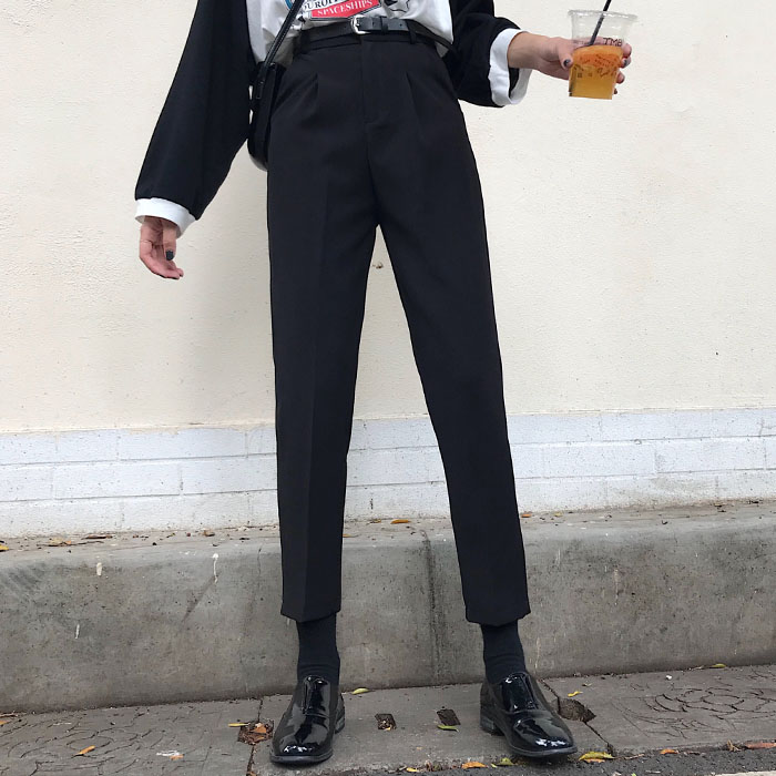 / 秋季女裝韓版寬松顯瘦直筒褲九分褲學生褲子高腰煙管褲西褲休閑褲