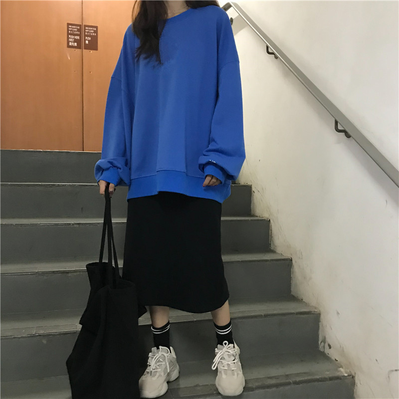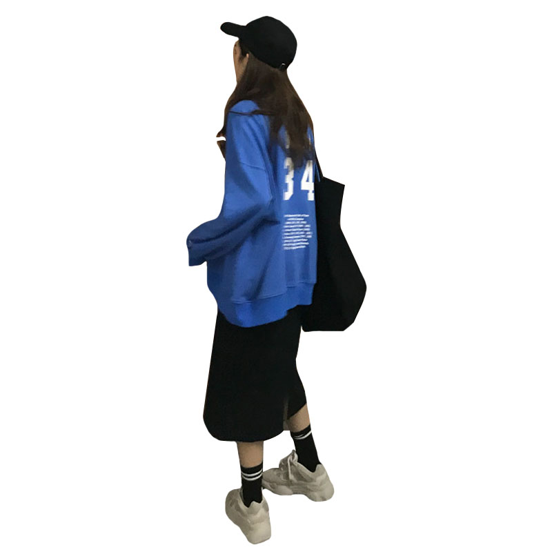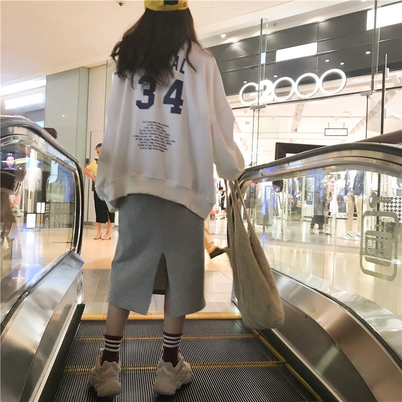 / 韓版時尚休閑套裝秋季中長款長袖衛衣+開叉包臀裙半身裙兩件套女
