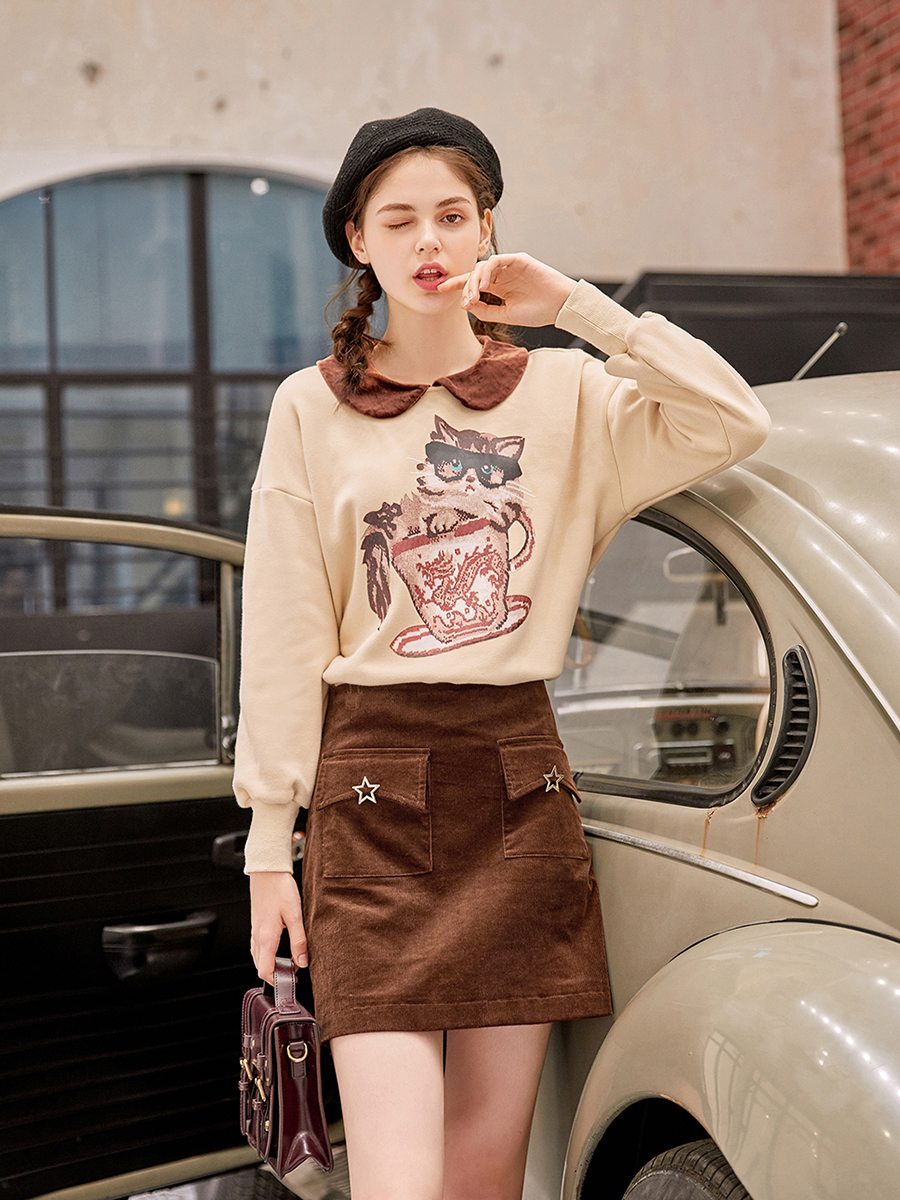 / MG小象高腰半身裙女時尚包臀短裙秋冬2018新款港味復古a字裙子潮