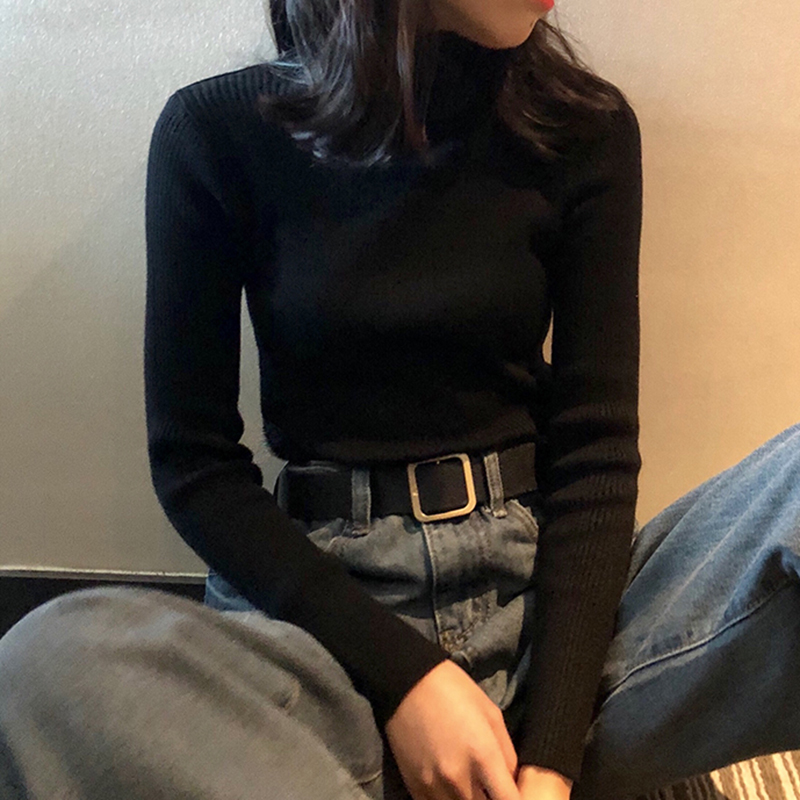 秋冬女2018新款韓版基礎款復古純色高領修身顯瘦長袖打底針織衫