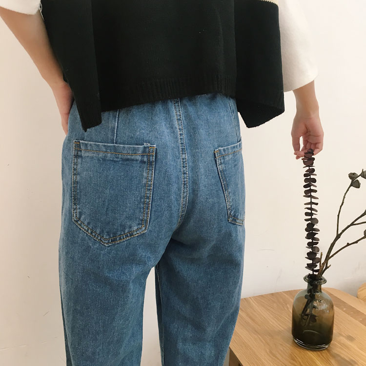 學院風復古風的一款牛仔褲,松緊的腰身不挑身材穿,
