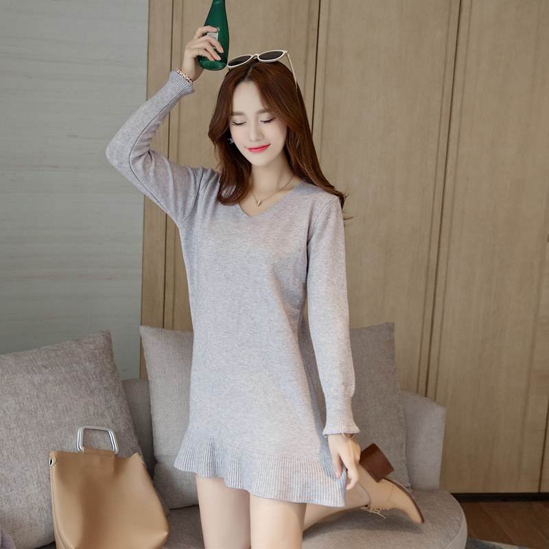 秋季女裝韓版上衣針織衫套頭女毛衣外套秋冬新款潮V領中長款