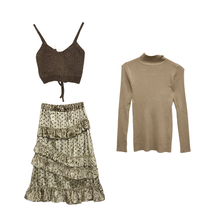 灰色上衣|杏色上衣|藍色背心|卡其色背心|杏色裙子|灰色裙子