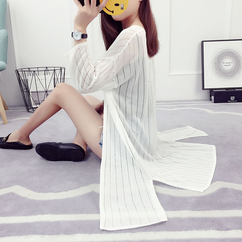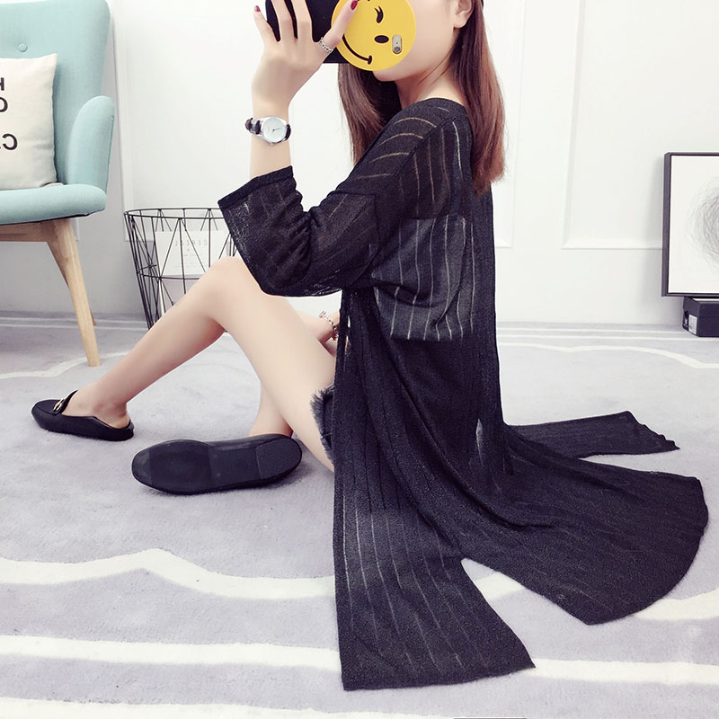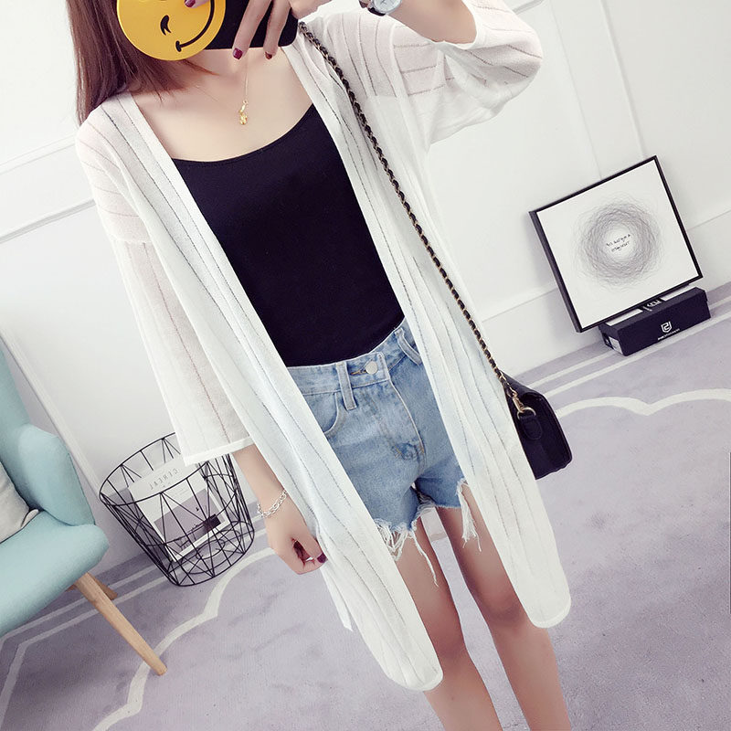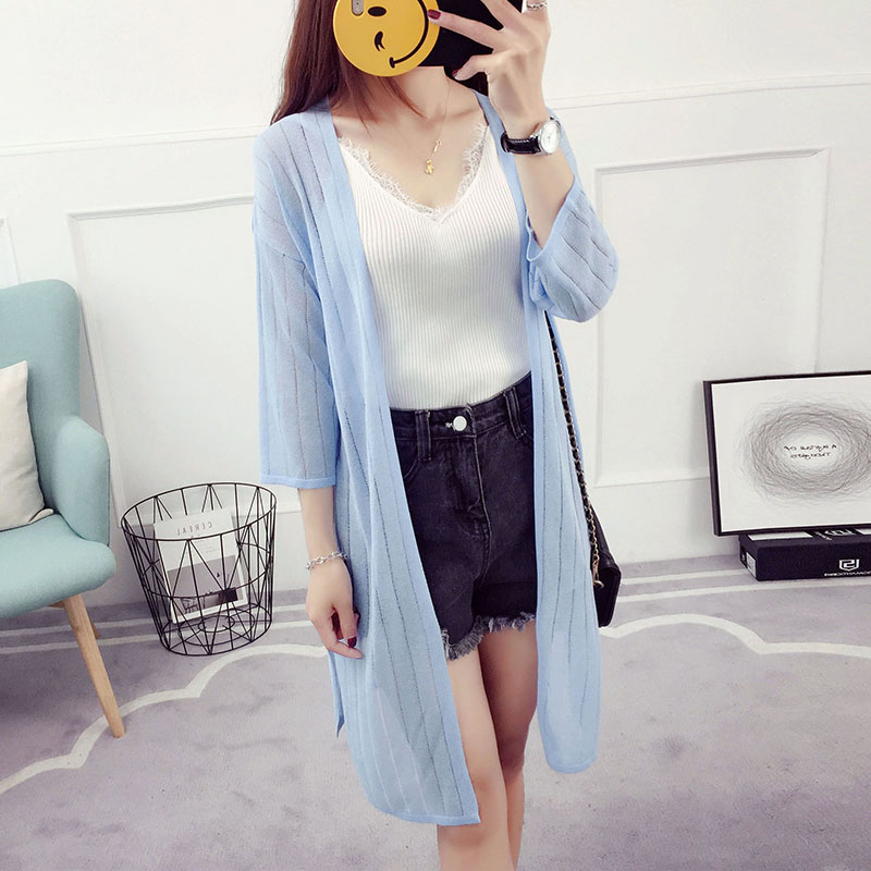 冰絲針織開衫女薄款外搭防曬夏季中長款七分袖韓版百搭外套空調衫
