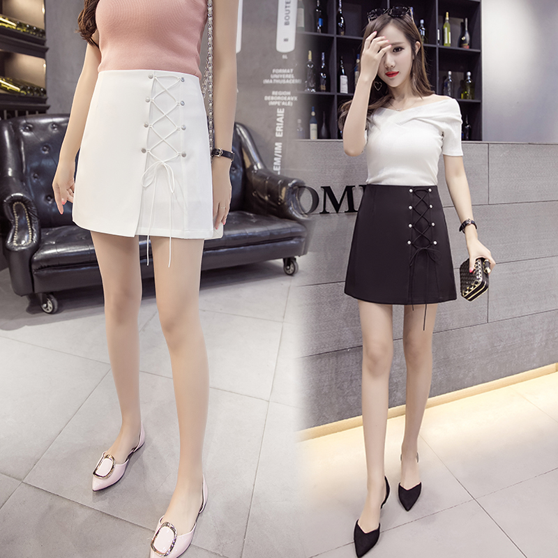 / 夏韓版高腰A字裙半身裙女綁帶包臀短裙防走光褲裙不規則半裙