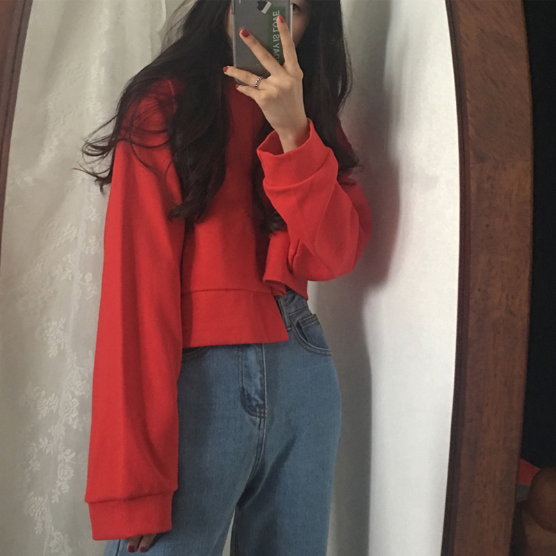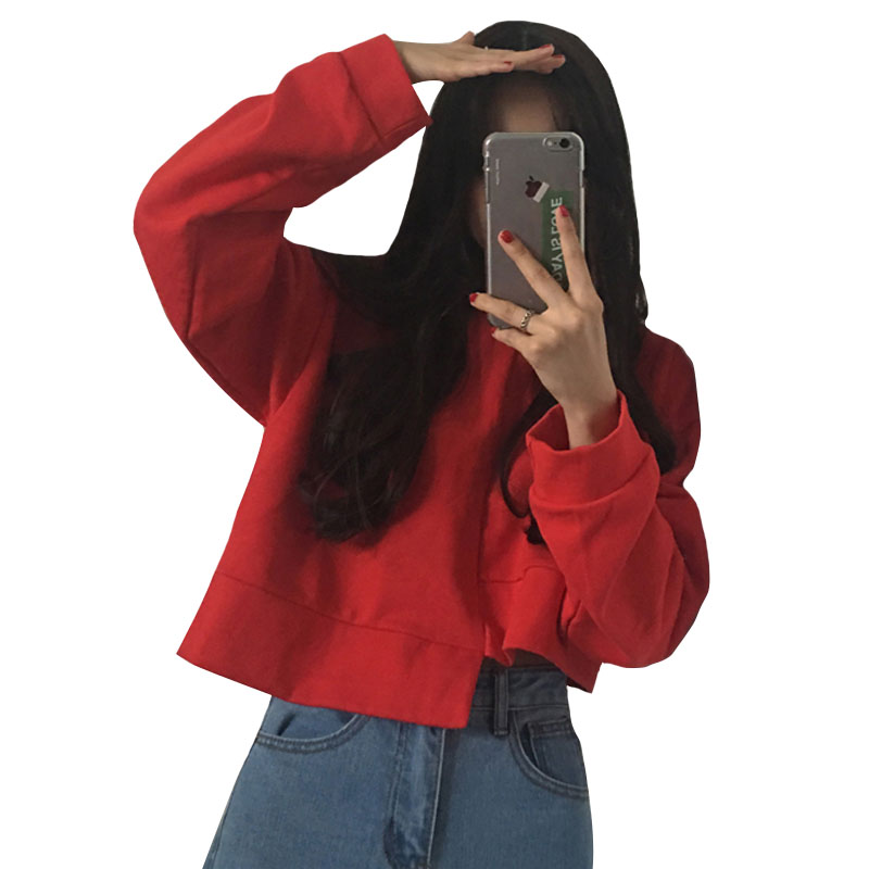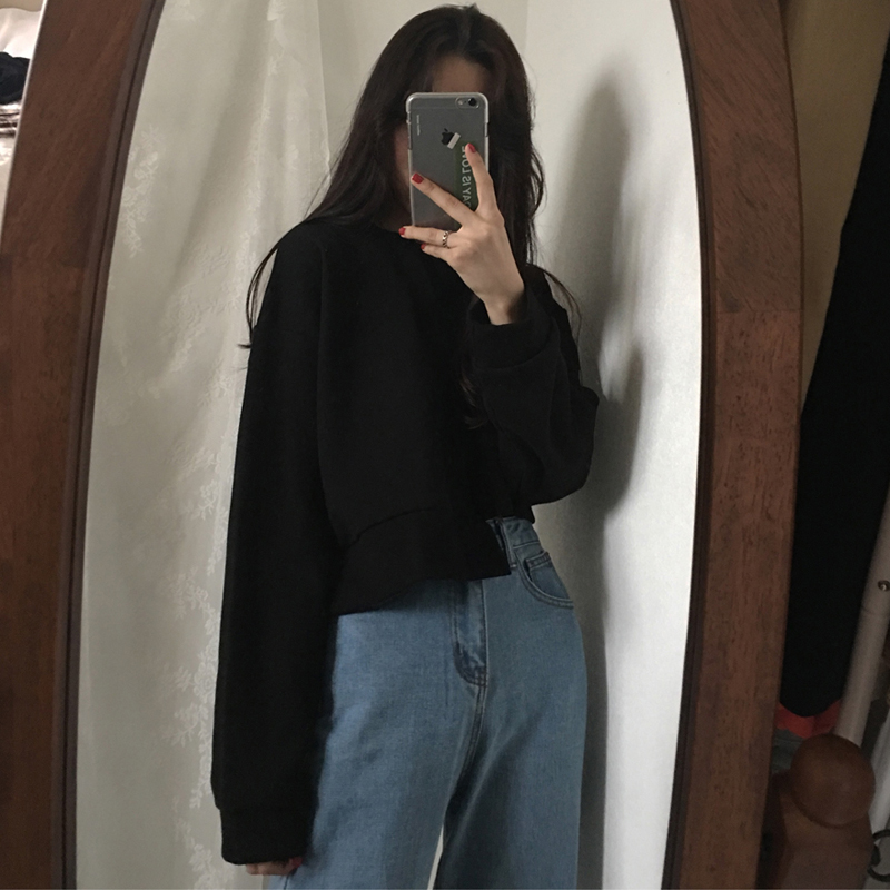 秋裝女裝2018新款韓版短款不規則露臍寬松長袖套頭衛衣上衣外套潮