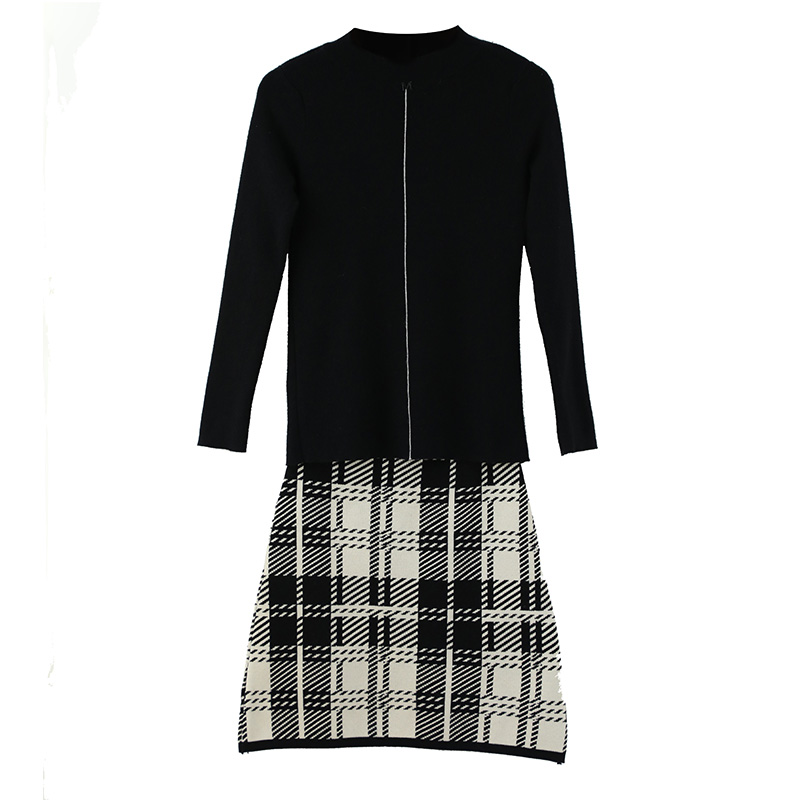 長袖針織衫上衣女2018新款女神范格子半身裙氣質秋季套裝裙兩件套