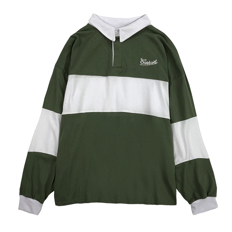 / 時尚拼色字母刺繡POLO衫秋裝女2018新款寬松長袖T恤學生休閑上衣