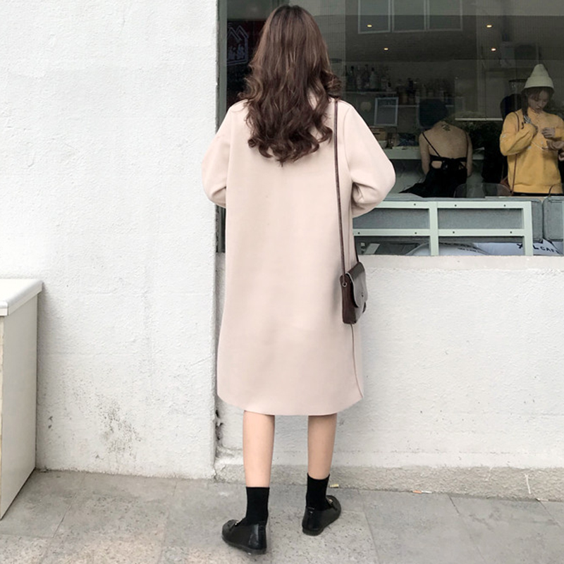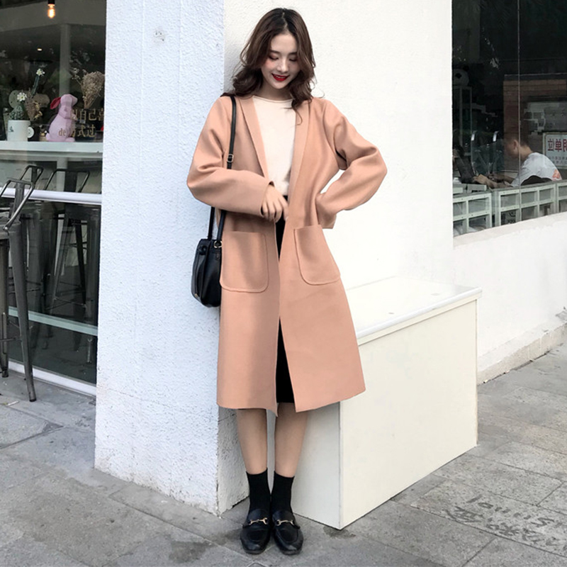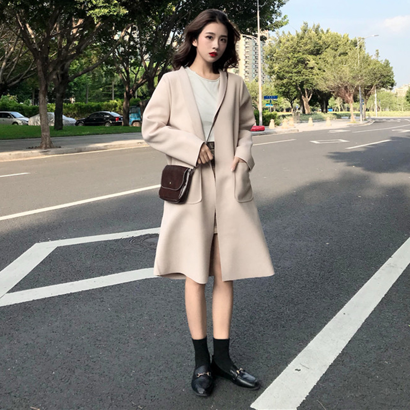 2018流行大衣女秋冬裝新款韓版學生毛呢外套女白色中長款無扣呢子