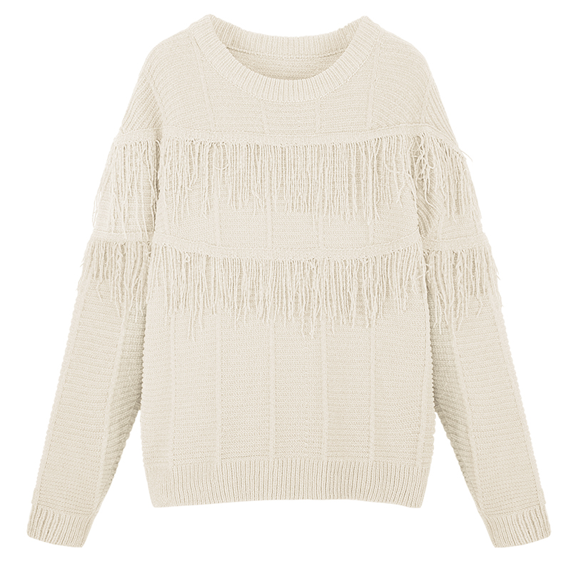 MG小象慵懶風針織毛衣女冬小清新套頭毛線衣2018新款寬松流蘇上衣