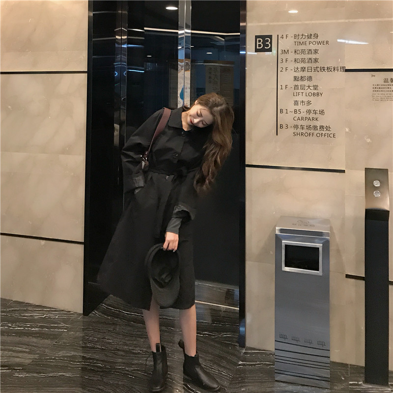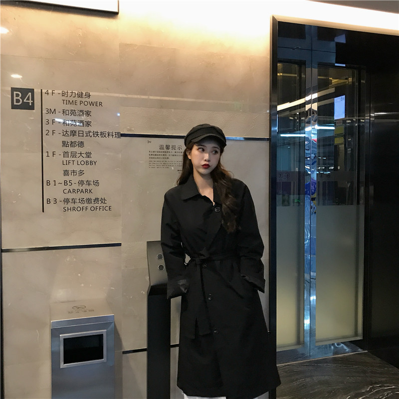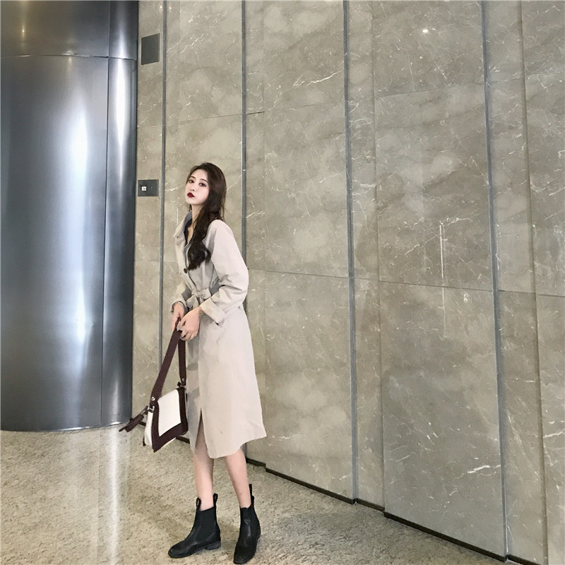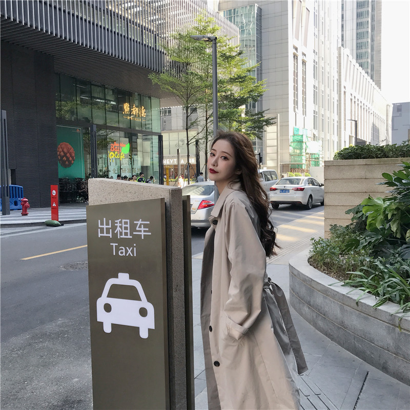 2018新款chic純色系帶時尚寬松顯瘦復古氣質風衣外套女潮流有里布