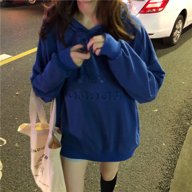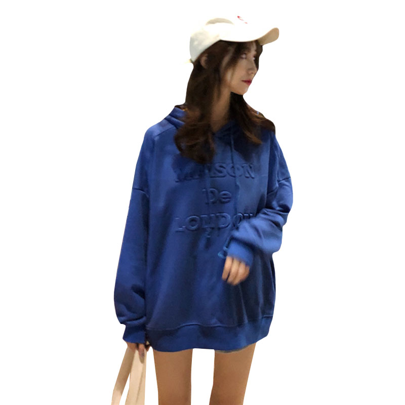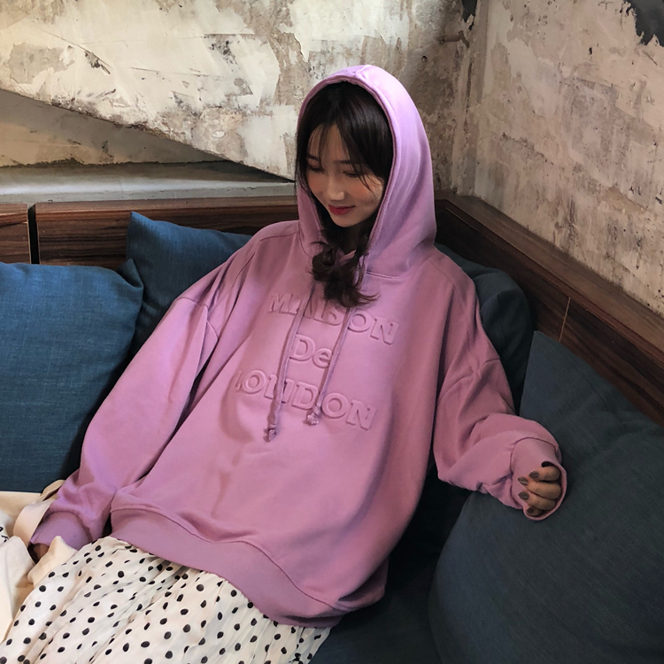 / 秋季韓版中長款立體字母工藝BF風寬松連帽套頭超火衛衣上衣外套女