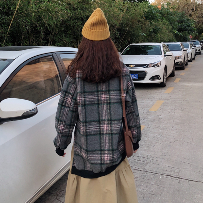 / 秋冬女裝2018新款寬松長袖前短后長格子套頭毛呢衛衣學生上衣外套