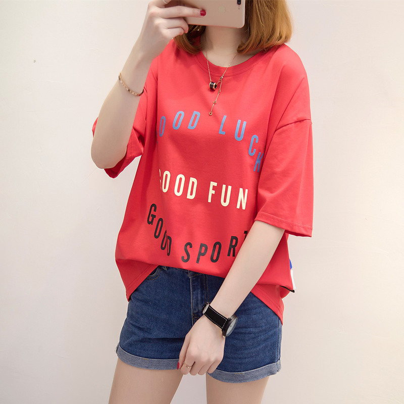 短袖t恤女寬松中長袖打底體恤衫字母上衣女夏裝新款女百搭