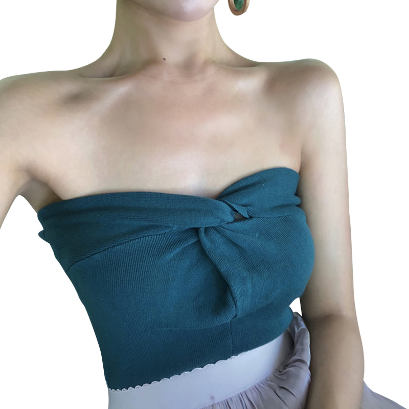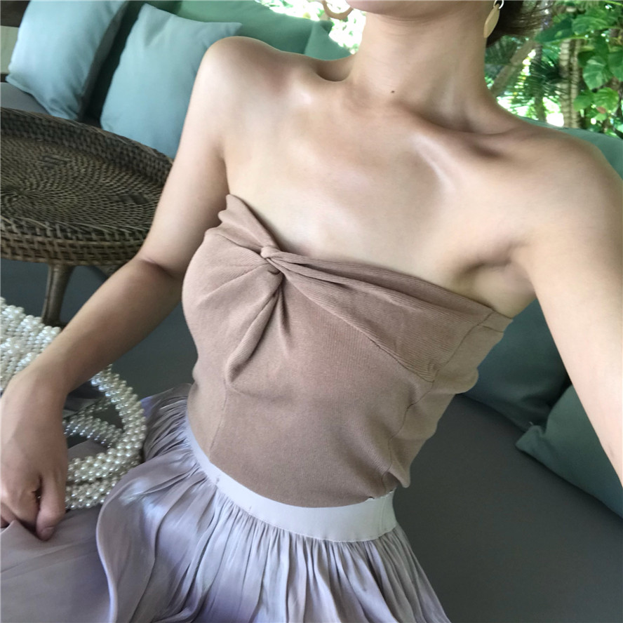 / 2018新款韓版百搭打結抹胸針織背心打底時尚純色復古chic吊帶上衣