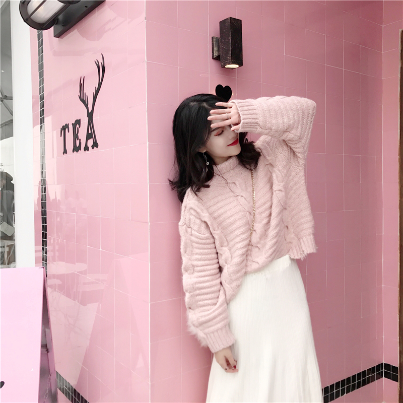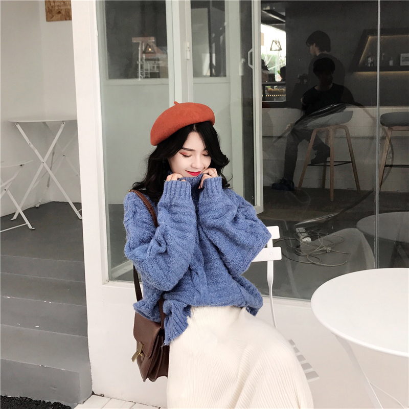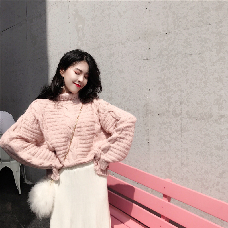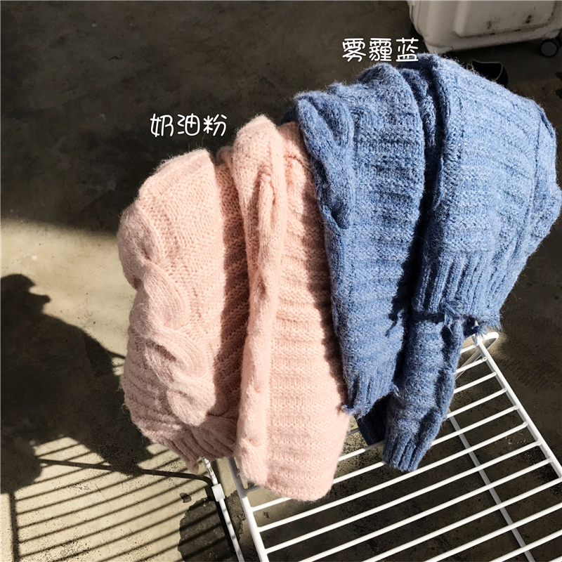 初秋溫柔風2018新款針織衫保暖寬松粗毛線學生長袖氣質套頭毛衣女