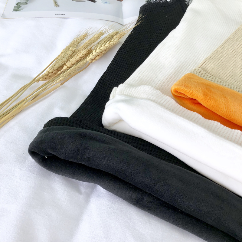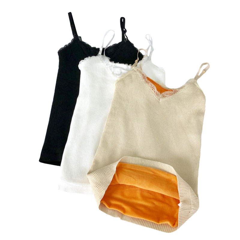 / 秋冬韓版針織加絨加厚彈力蕾絲邊V領吊帶打底衫背心內衣上衣女士