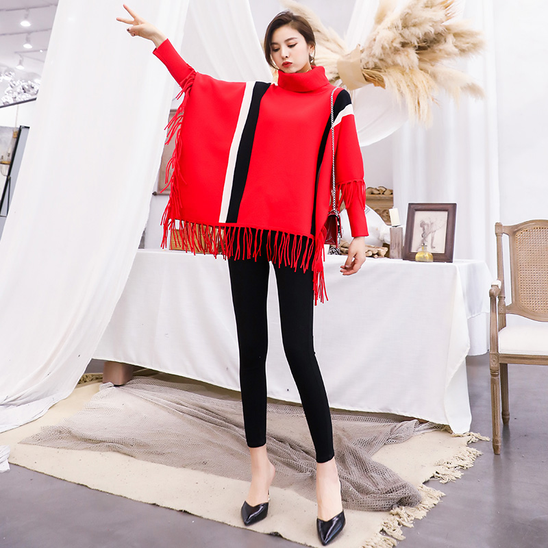 S秀淑女氣質2018秋季新款高領流蘇針織上衣緊身九分褲套裝潮