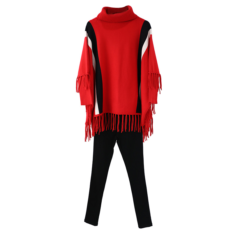 / S秀淑女氣質2018秋季新款高領流蘇針織上衣緊身九分褲套裝潮