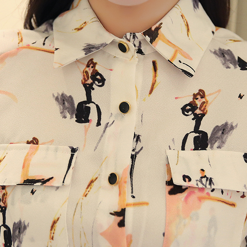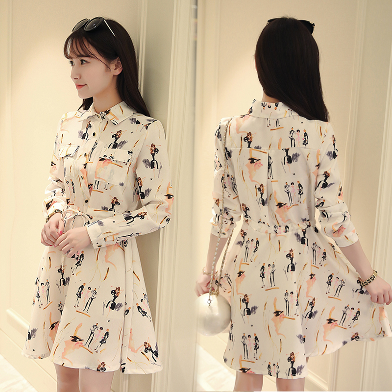 / 春裝新款女裝韓版翻領抽象印花長袖顯瘦襯衫連衣裙修身公主裙
