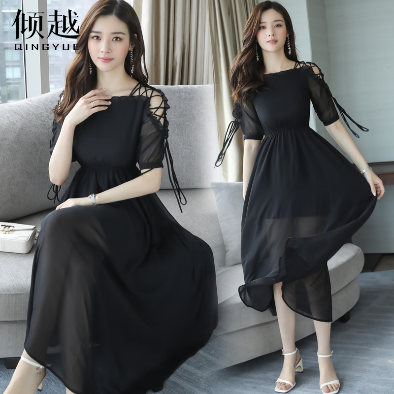 / 沙灘裙海邊度假紅色雪紡連衣裙顯瘦氣質長裙2017新款女夏波西米亞