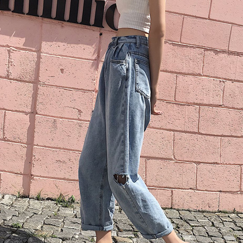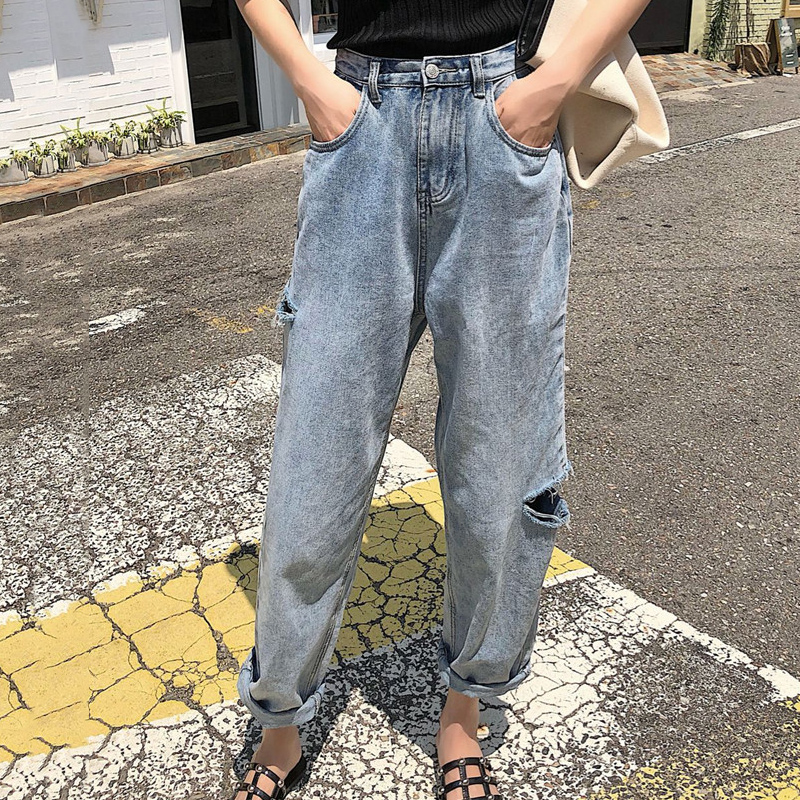 褲子女2018秋裝新款破洞復古寬松顯瘦直筒牛仔褲百搭休閑九分褲潮