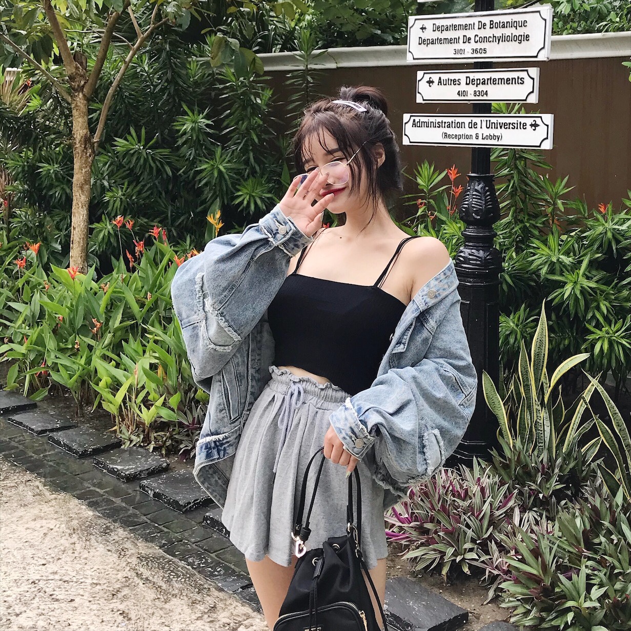 / 2018春秋款歐美寬松破洞剪邊做舊牛仔衣百搭短款拼接牛仔外套女潮