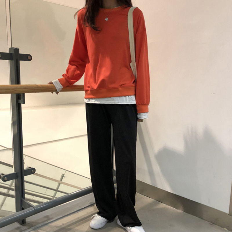 秋裝原宿假兩件慵懶風衛衣女2018新款學生韓版寬松長袖上衣套頭衫