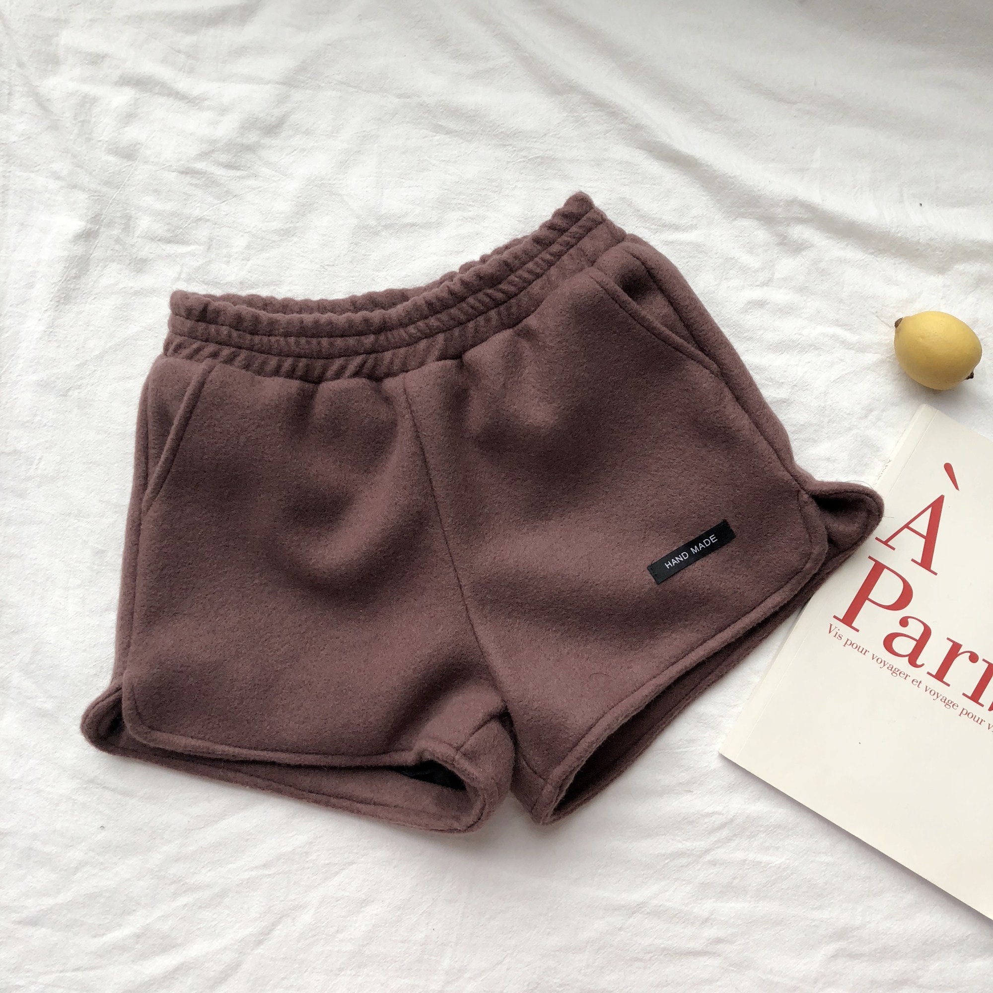 / 韓版新款百搭加厚毛呢寬松短褲子松緊腰褲高腰直筒褲休閑闊腿褲女