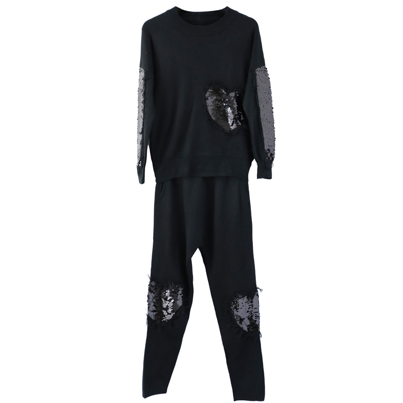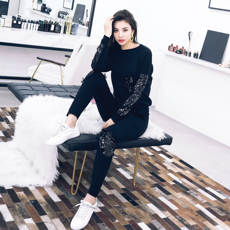 休閑時尚套裝女2018秋冬裝新款長袖毛衣小腳褲長褲針織兩件套