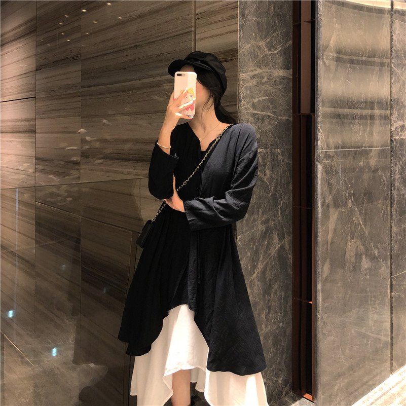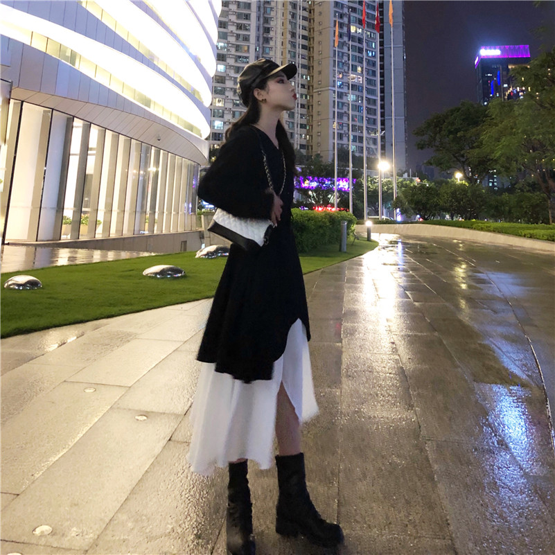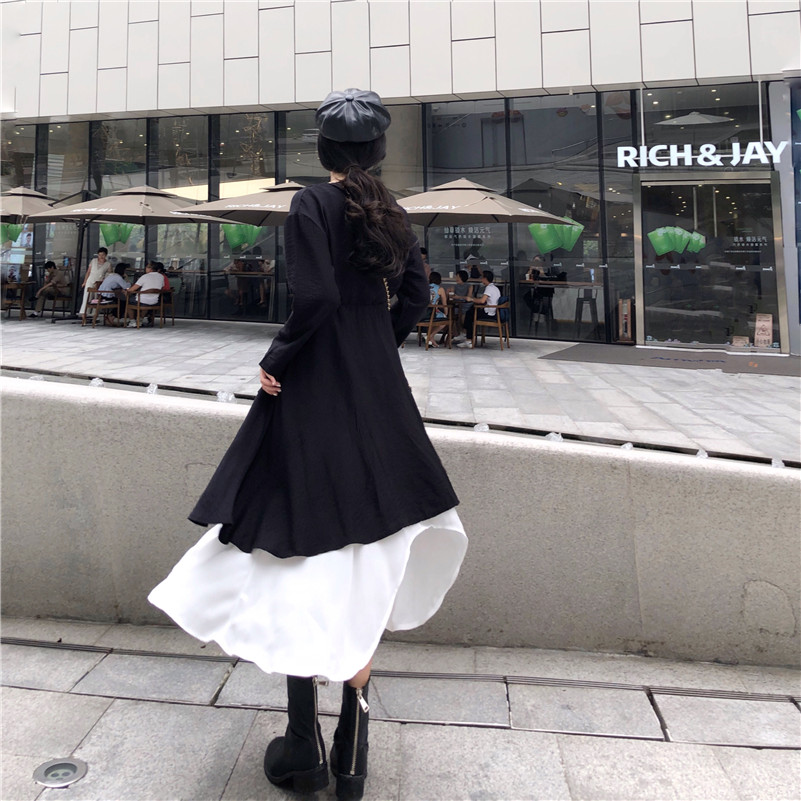 / 2018新款洋氣時尚套裝chic裙子兩件套長袖連衣裙外搭冷淡風裙女裝