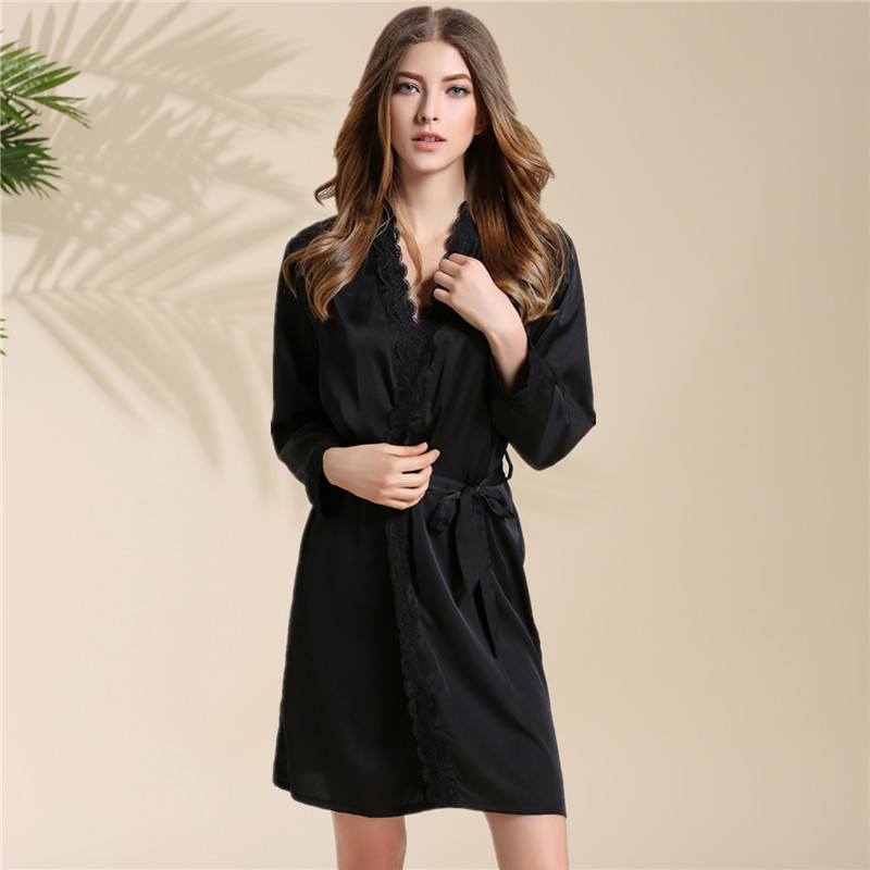 女士睡袍夏季浴袍女夏款性感睡衣女浴衣冰絲蕾絲綢長袖家居服春秋