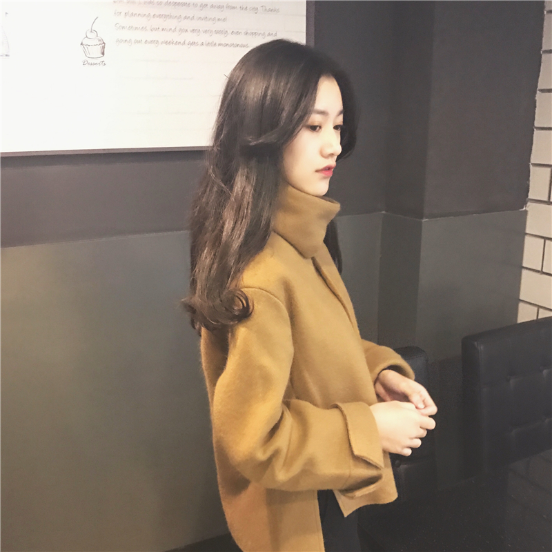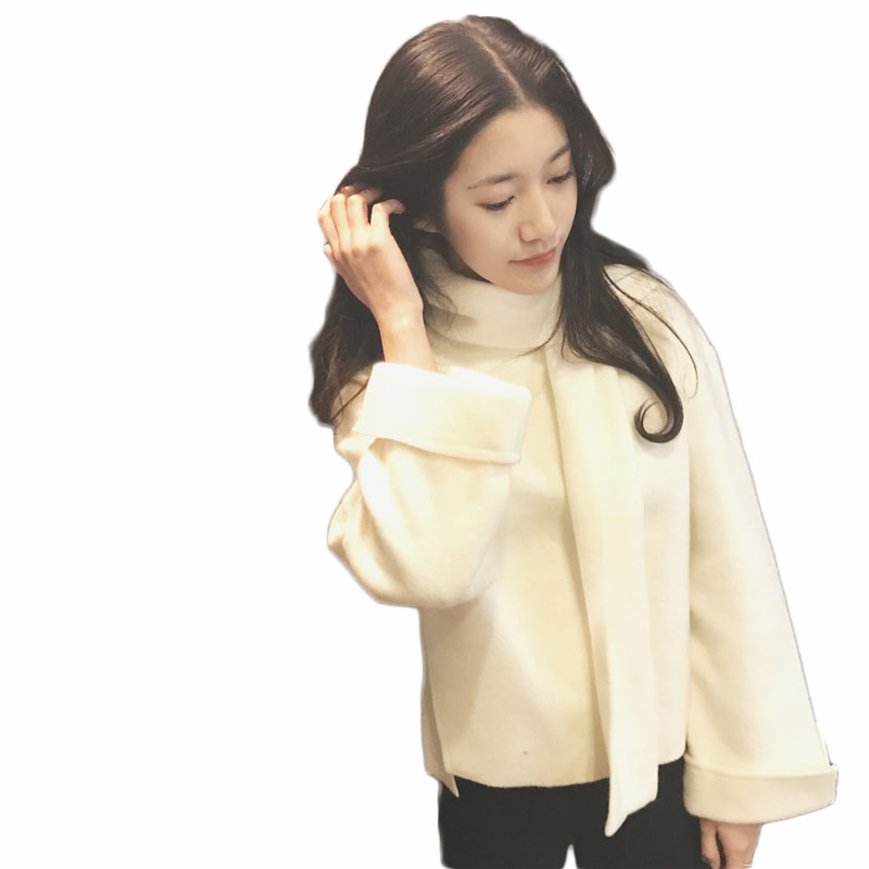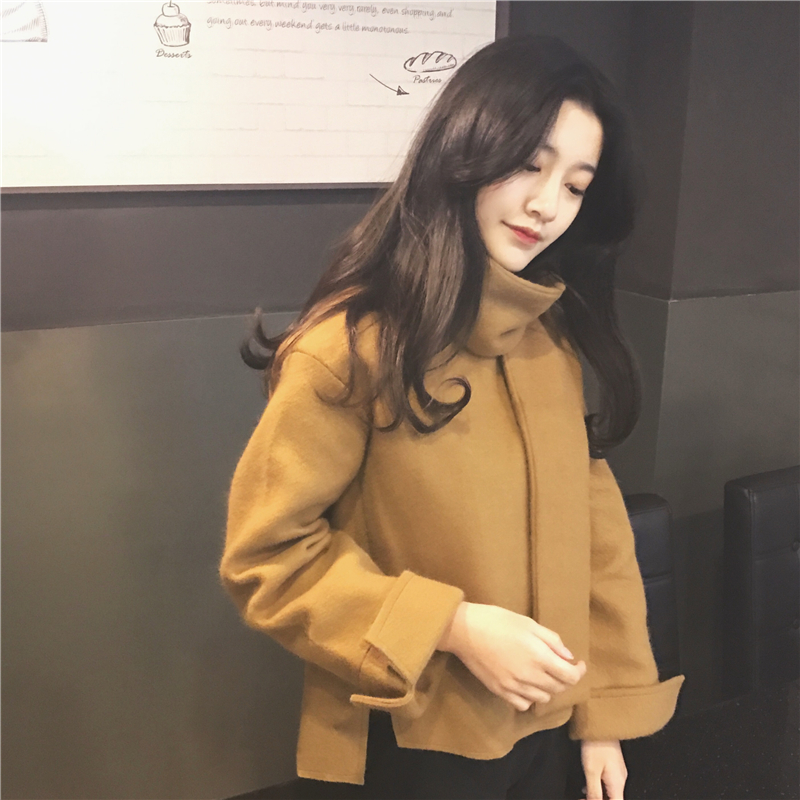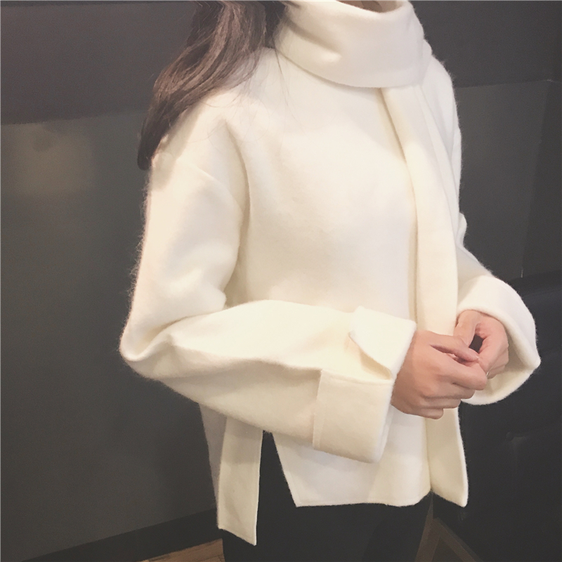 復古韓國chic風時尚圍脖呢子外套女2018新款冬季寬松短款套頭絨衫