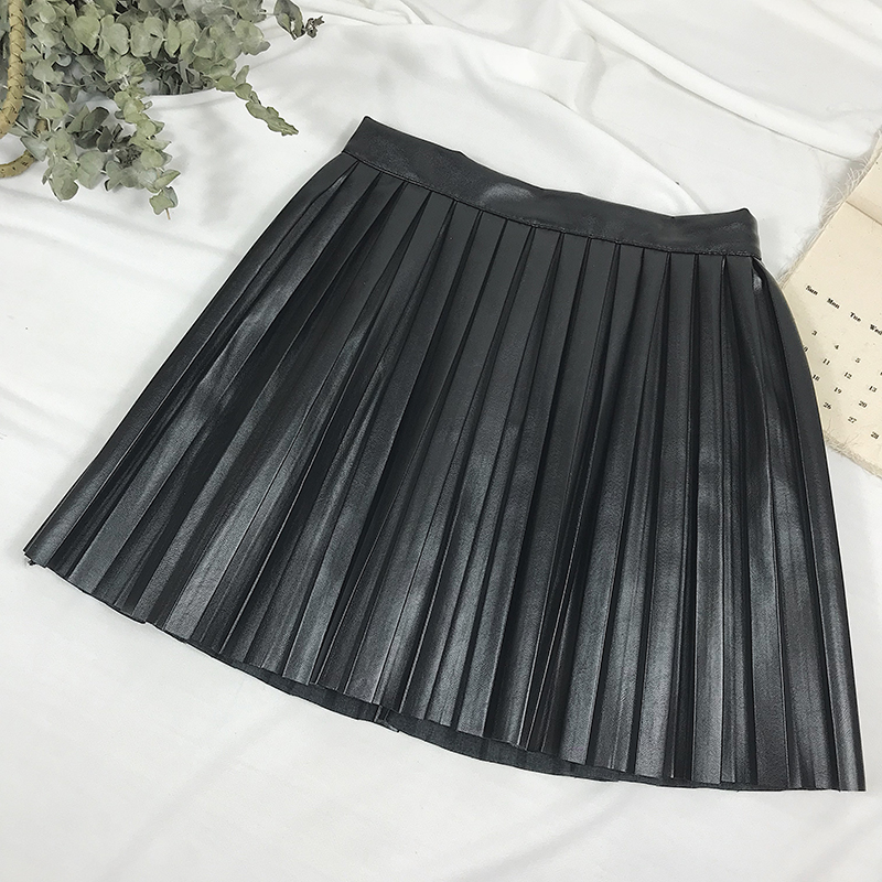 裙子女冬裝2018新款韓版高腰顯瘦百褶裙學生寬松a字半身裙皮短裙