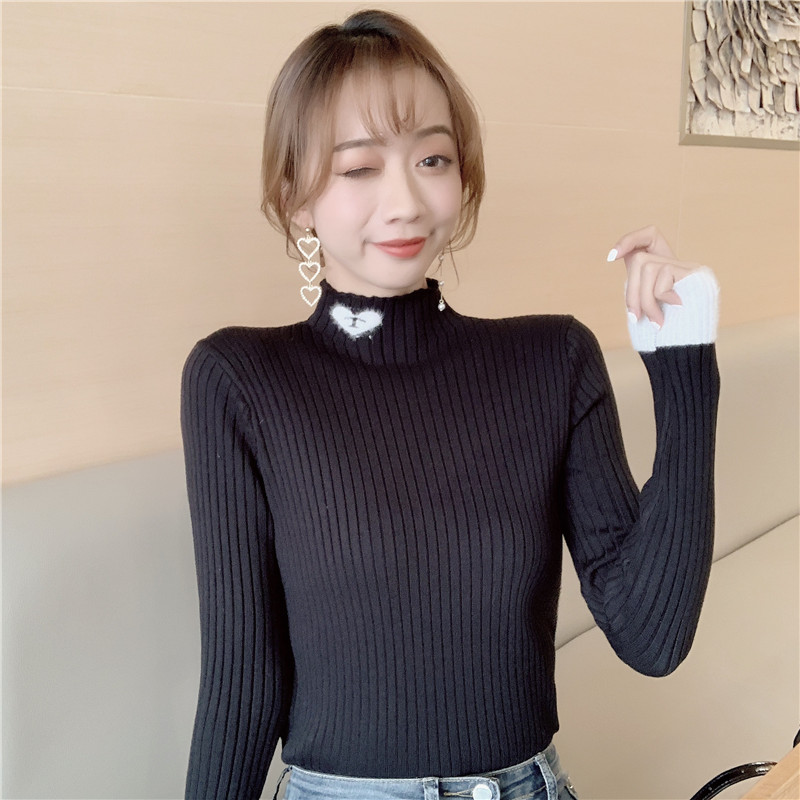 / 氣質半高領修身打底長袖緊身套頭毛衣女秋冬2018新款針織衫上衣潮